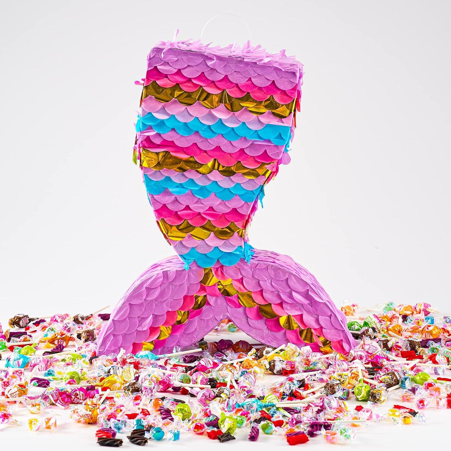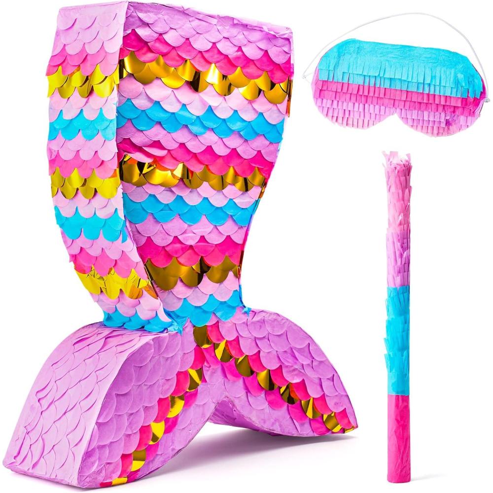 Dinosaur Pinata with Plastic Bat and Paper Blindfold(15.5H X 10.5W X 3D), Cinco De Mayo Party, Dinosaur Animal Theme Parties Decorations, Indoor or Outdoor fiesta(Mermaid)
