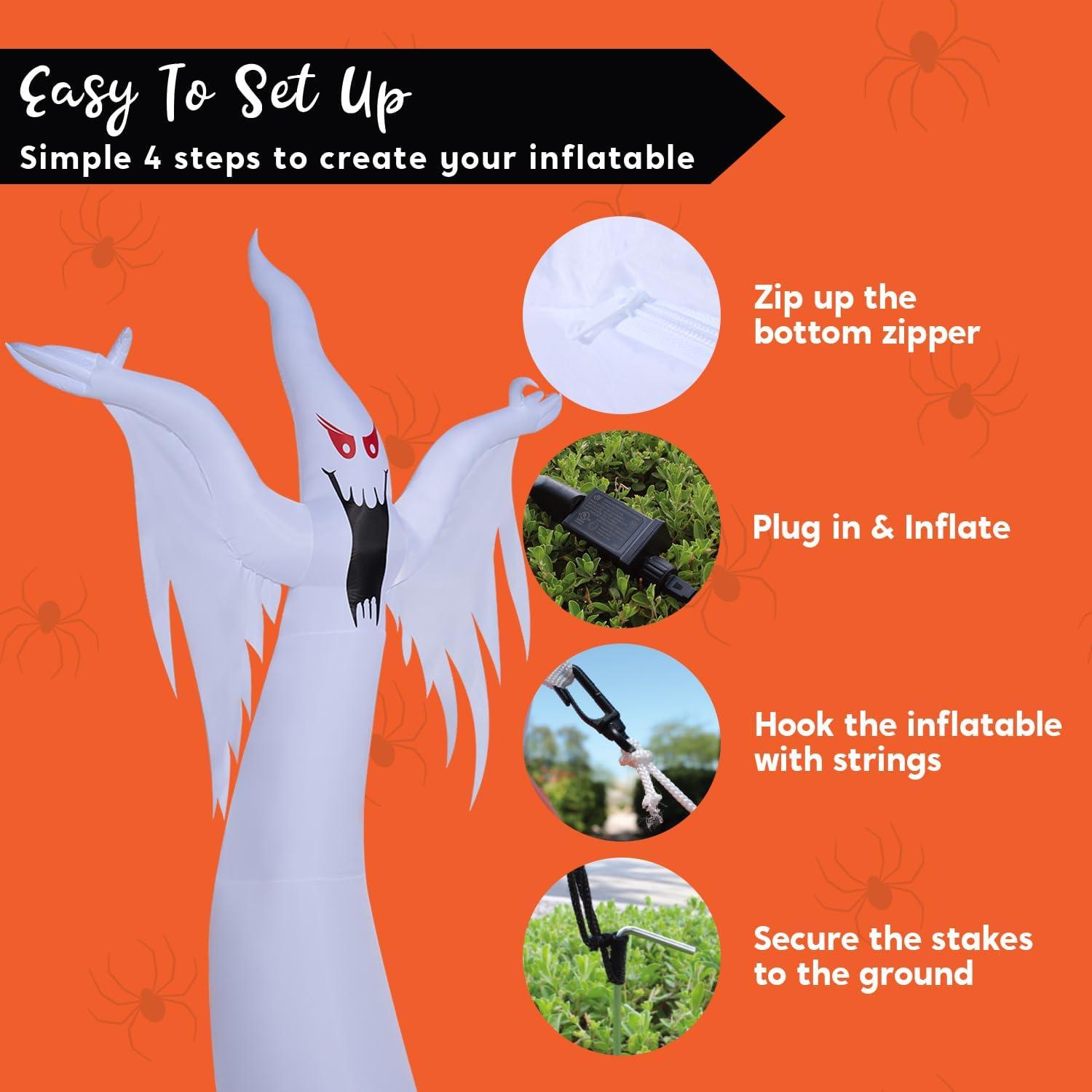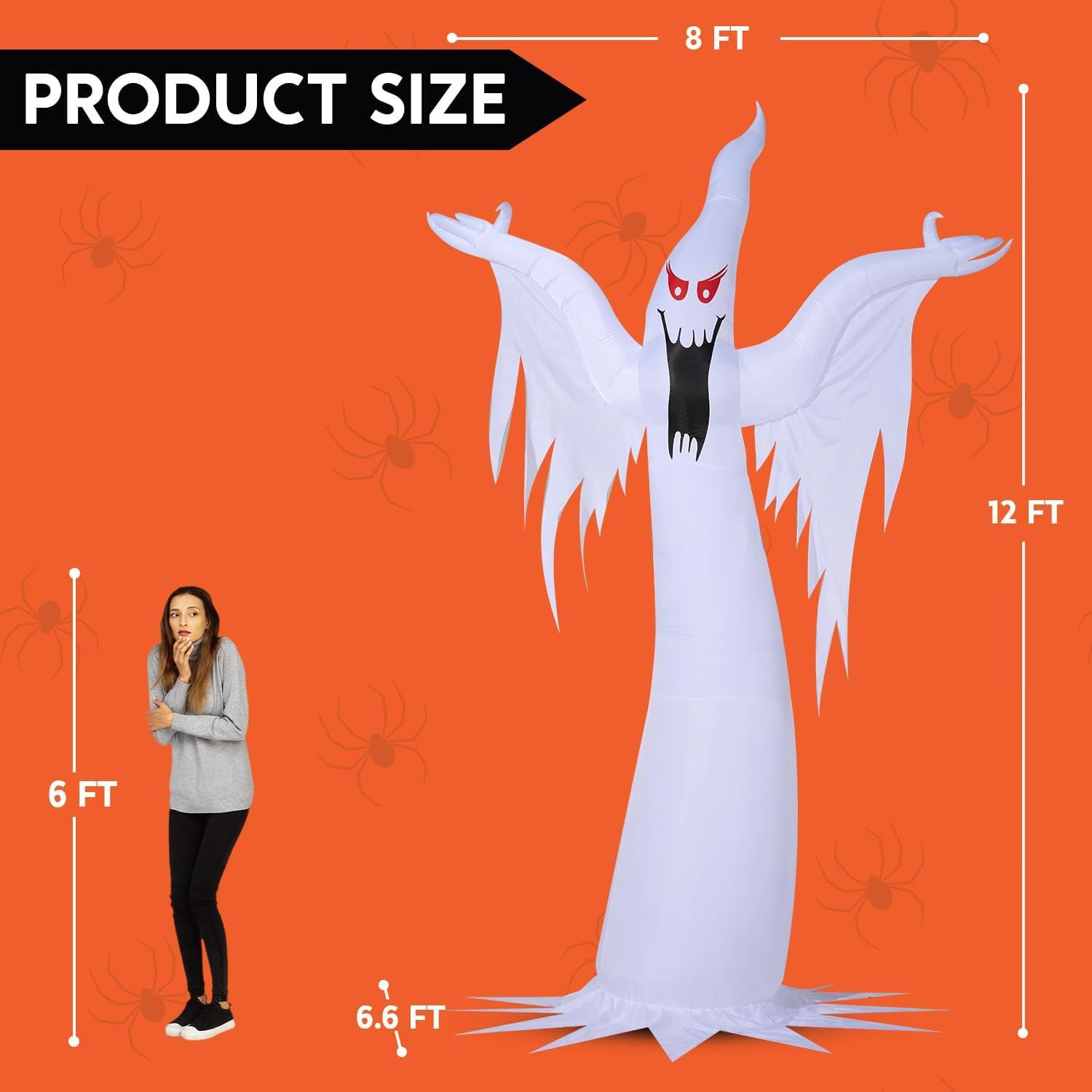 Perfect Decor. This 12 ft inflatable ghost is versatile and can be used in a variety of scenarios. Our Halloween blow up decoration is ideal for Halloween outdoor decoration, yard garden decor, trick or treat event decoration, Halloween night events and Halloween blow-up decorations.