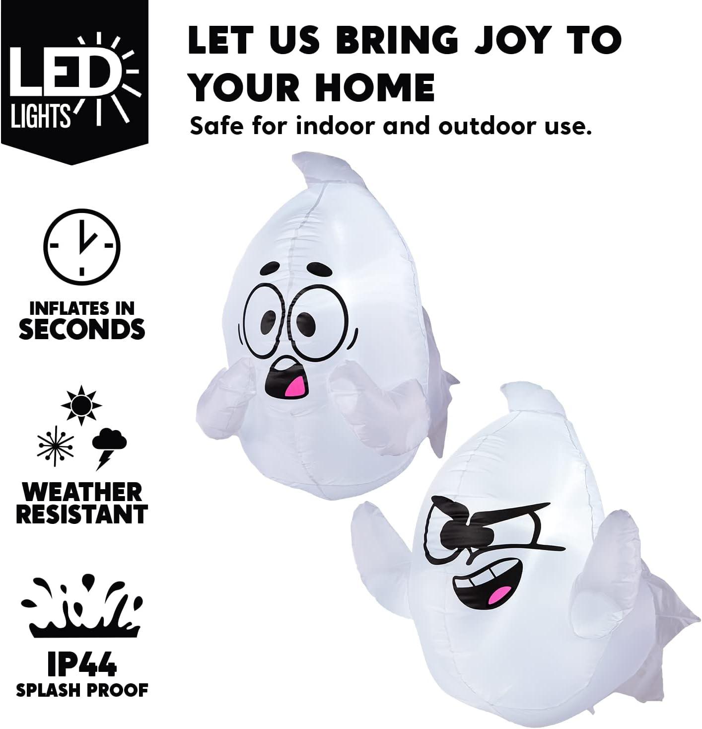 Unique Design. This Halloween inflatable flying silly ghost decoration has stunning visual effects, making it an unmissable centerpiece for your Halloween party. Comes with an extended cord, suction cups, fastened ropes, and a plug with UL certification.