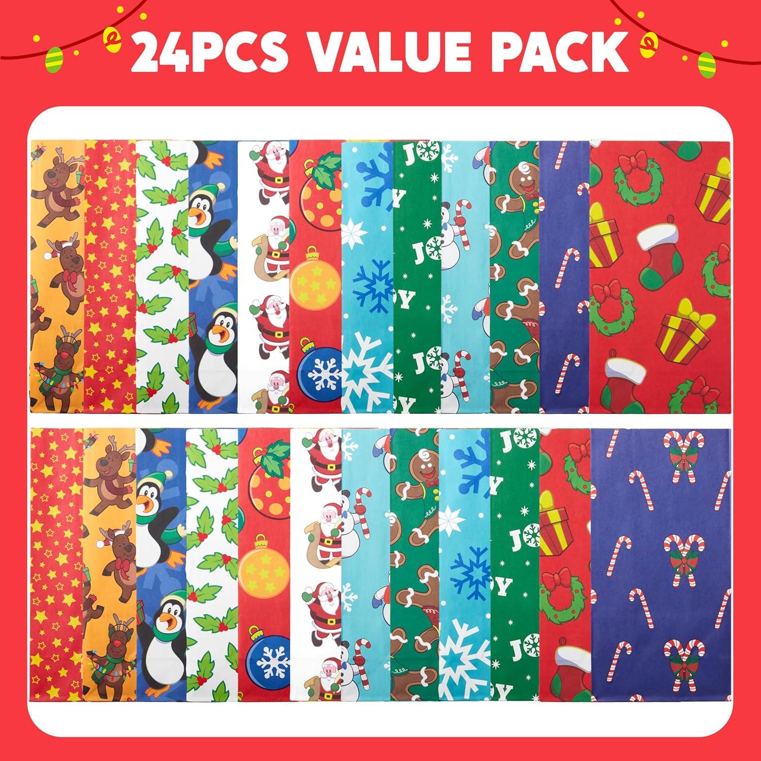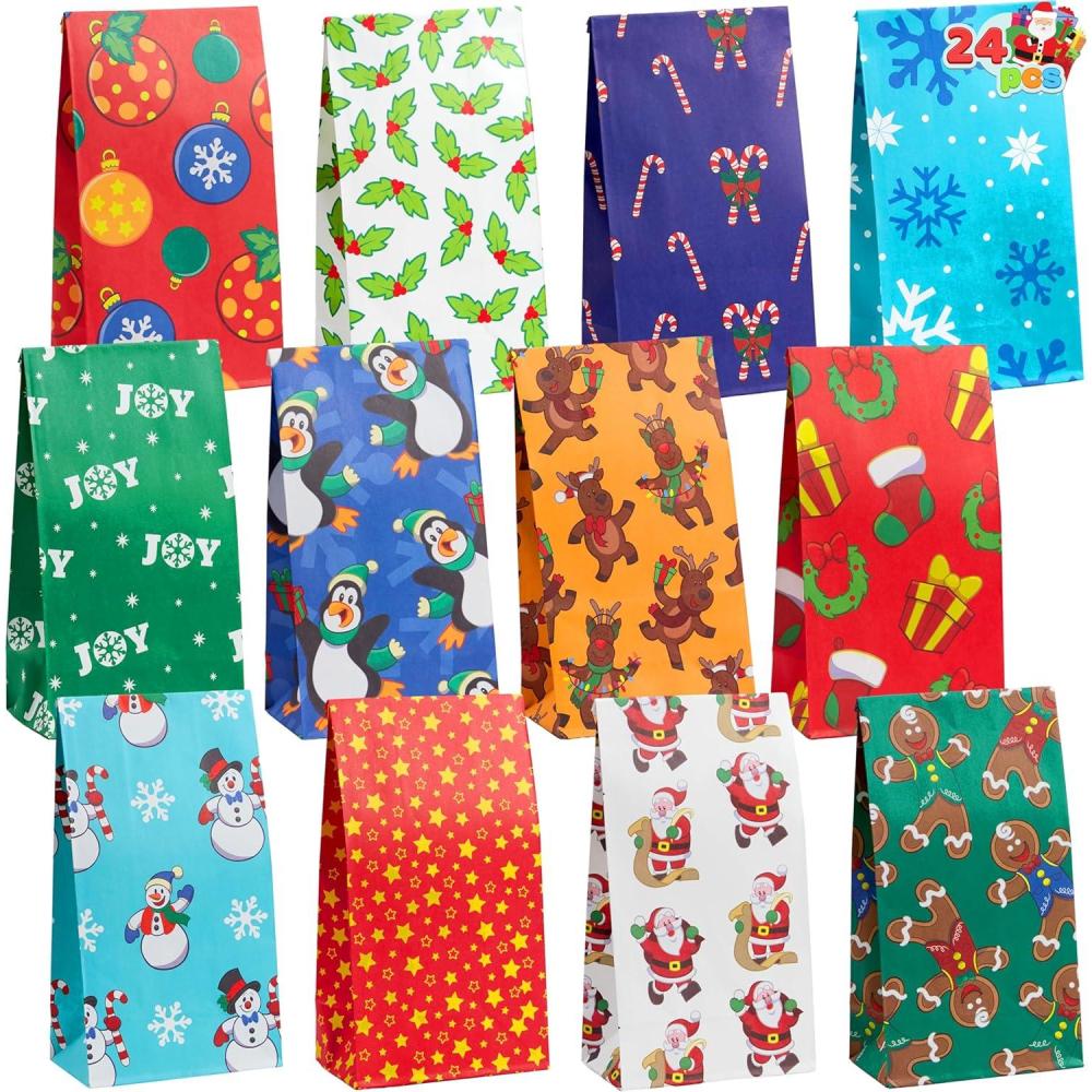 Convenient Size: Get the best bang for your buck with our 24-piece set of Christmas Holiday Goody Bags, perfect for all your gift-giving needs this festive season.Each bag measures 9.75″x 3″x 5″, providing ample space for small to medium-sized gifts, treats, and goodies, making your gift-giving experience easy and stress-free.