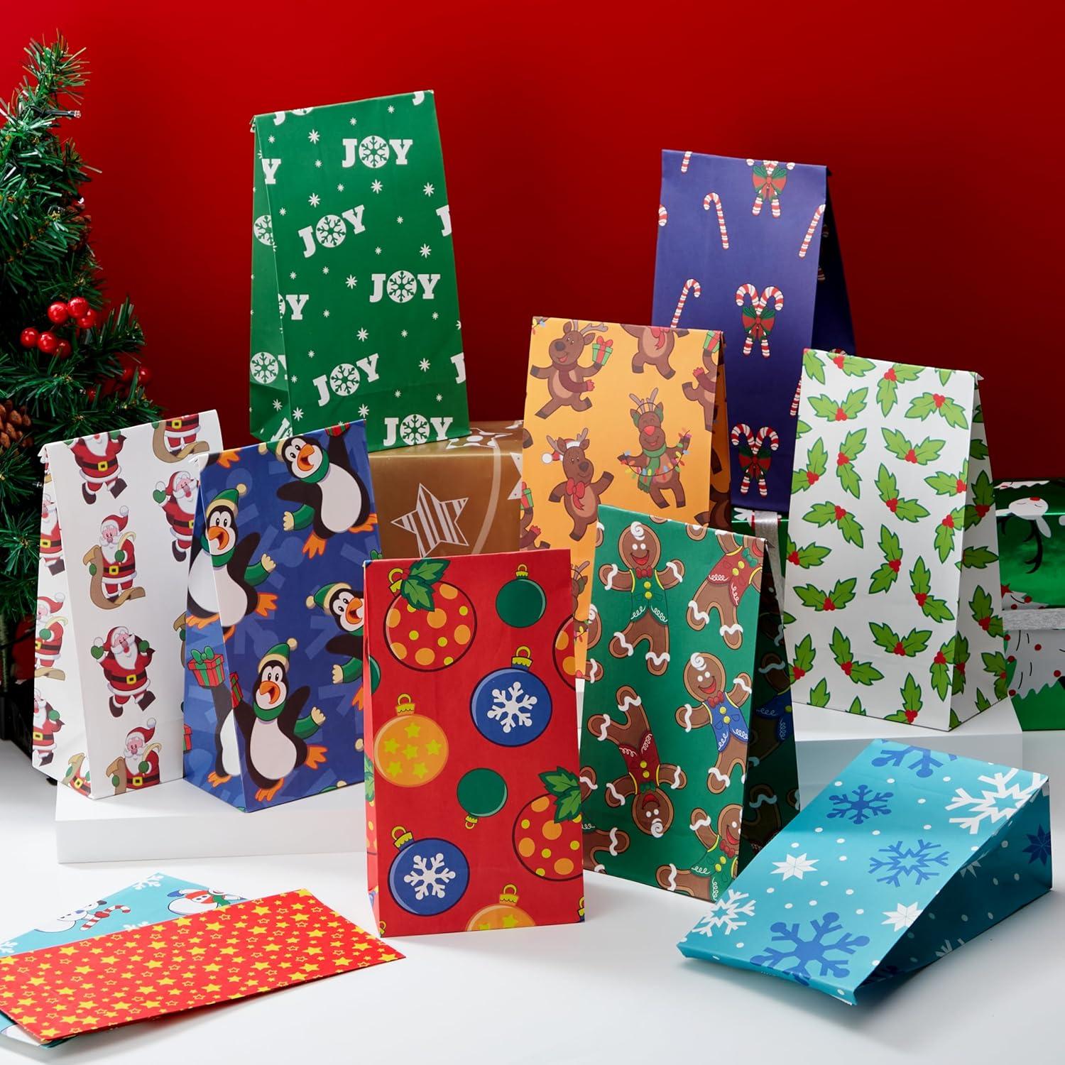 Christmas And Rich Design: Featuring 12 Christmas designs (2 pieces of each) including Snowflake, Santa, Reindeer, Snowman, Ornaments, Gingerbread Man, Stocking with Gift Box, Star, Candy Canes, Holly Leaves, Penguin, and Joy, these bags add a special touch to your holiday goodies.
