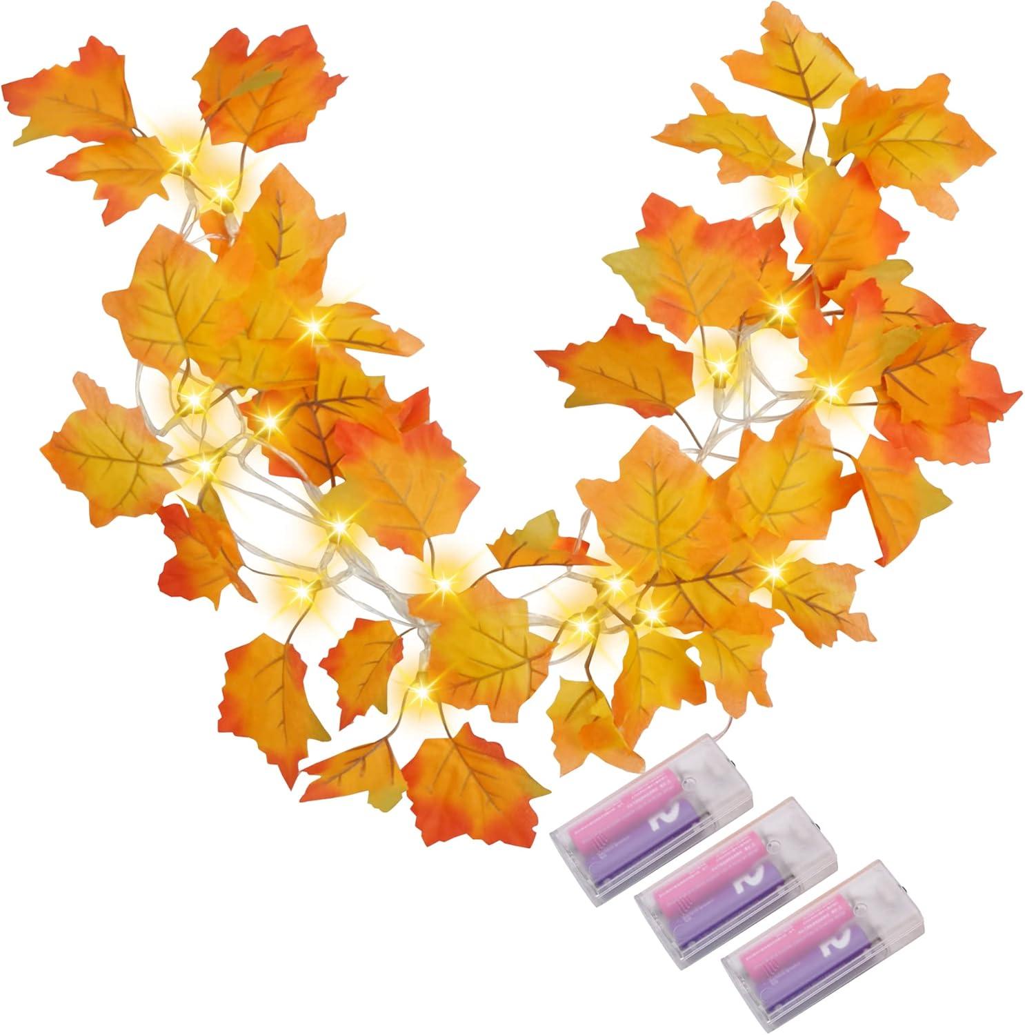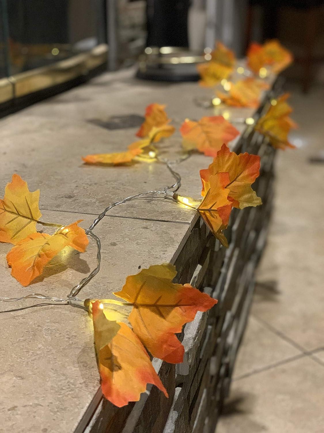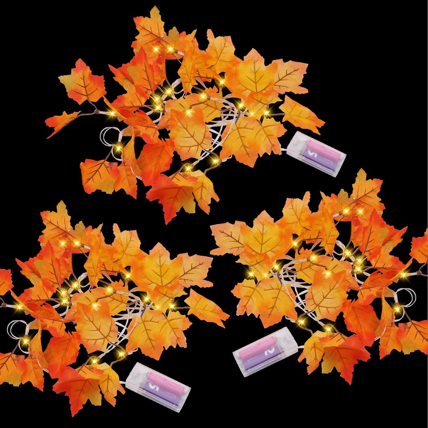 VALUE SET: This fall outdoor decoration set includes 3 pieces of 8.2 ft Fall Maple Leaf Garland. Each maple leaf string light with 20 LED warm white lights. (2 AA Batteries Required, Not Included)