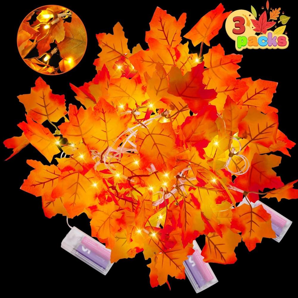 Joiedomi 3 Pack 8.2FT Thanksgiving Lights Fall Maple Leaves String Lights with 20 LED Warm White Lights for Autumn Garland, HomeThanksgiving Indoor Outdoor Decor