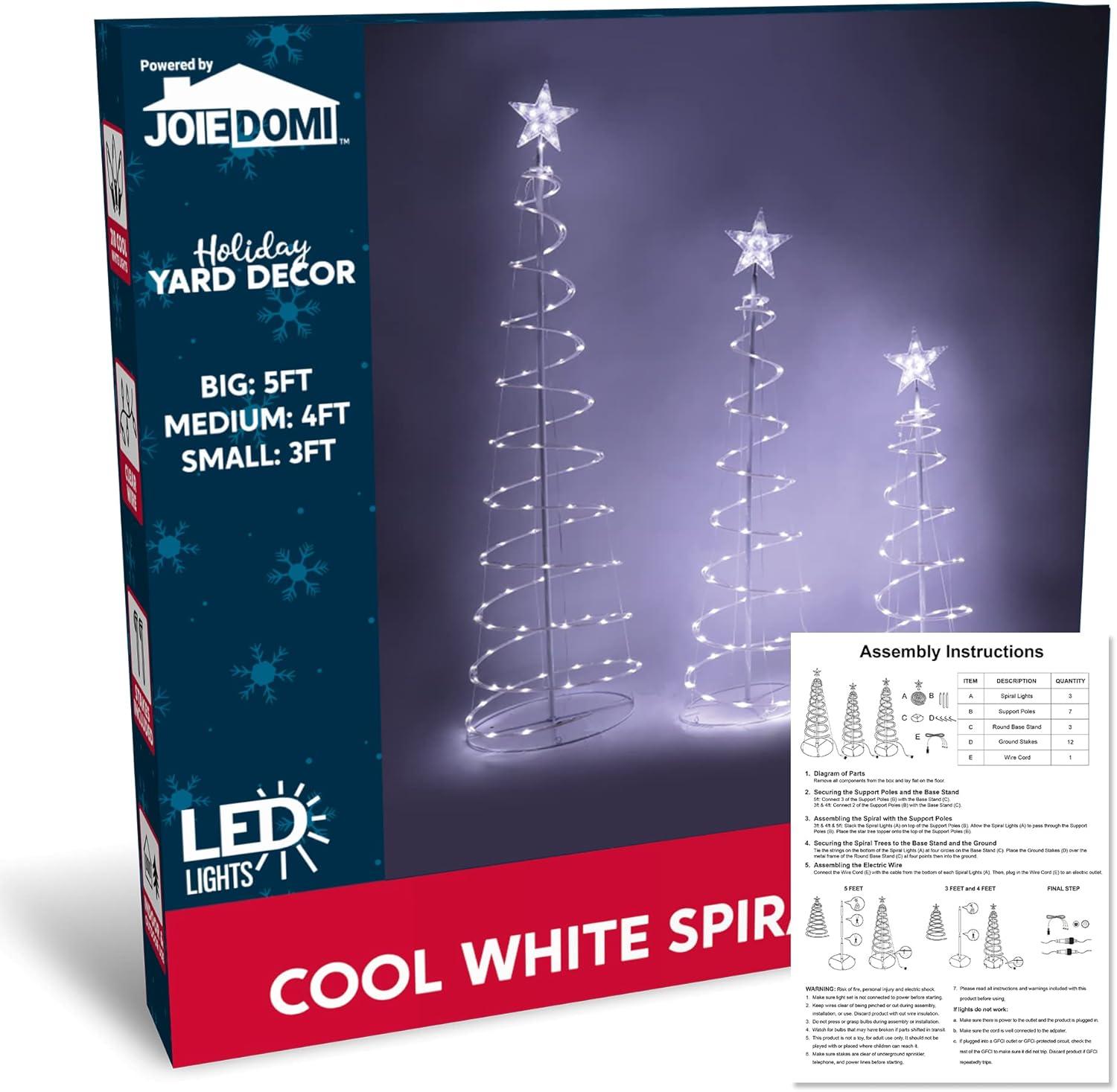 JOIEDOMI 3 Pack Spiral Christmas Tree Lights, 218 LED Outdoor Lighted Tree with Star Topper & Stakes, Christmas Decorations for Yard Porch Patio Garden Holiday Xmas Eve Night Décor, Warm White(Cool White)