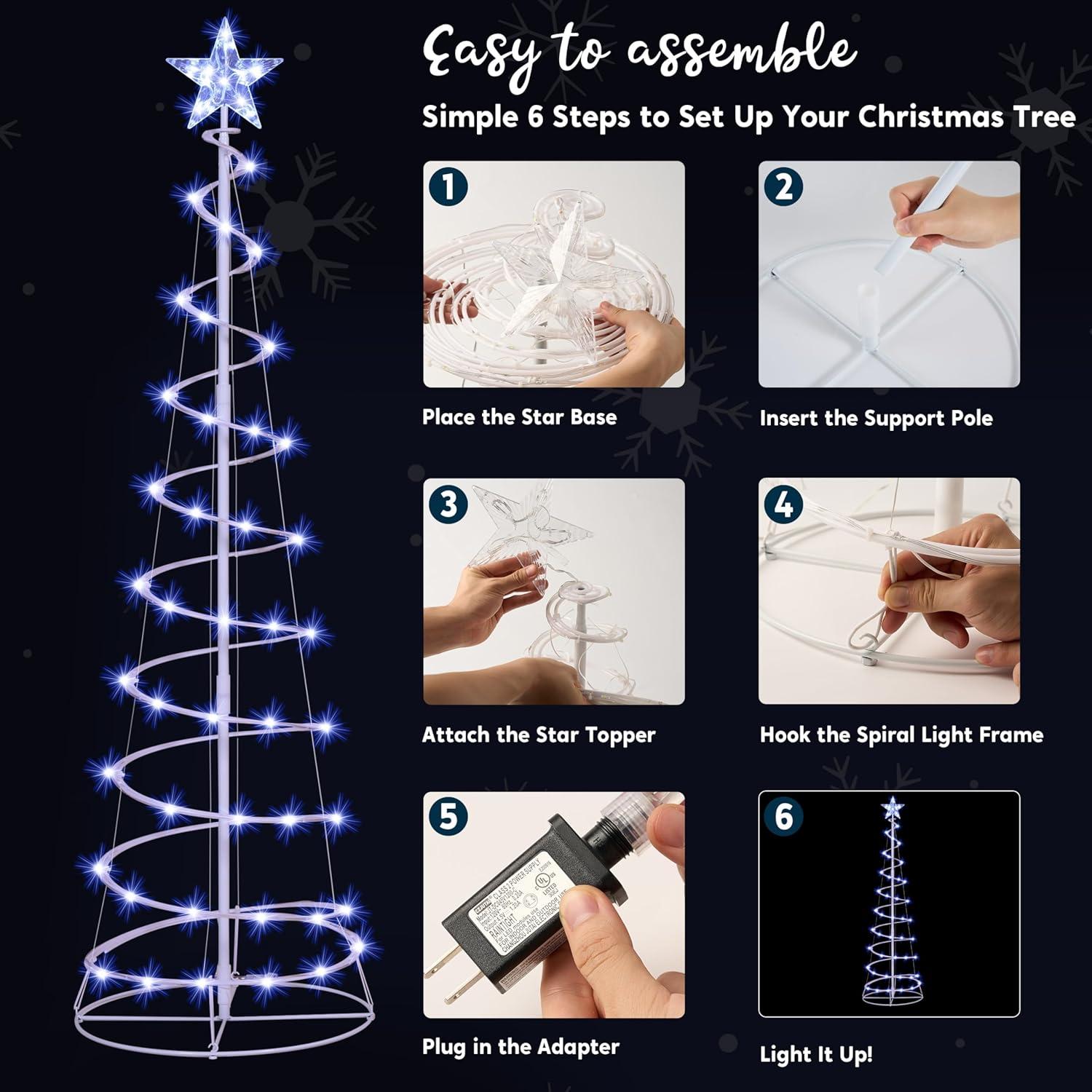 【A Truly Giftable Holiday Centerpiece】Built to last, these outdoor Christmas trees feature all-metal construction and IP44 rating for durable Christmas decorations outside. This spiral outdoor Christmas tree set is a perfect gift. A complete lighted spiral Christmas tree outdoor yard decorations solution, it creates magical outdoor Christmas decorations yard. These outdoor Christmas tree decorations offer beautiful Christmas decor and reliable outdoor Christmas decorations.