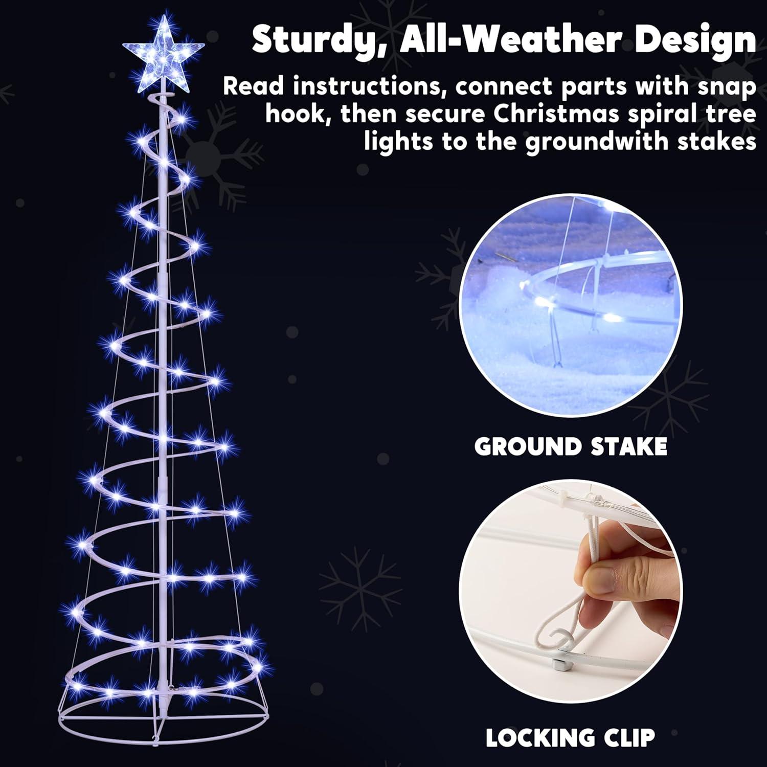 【Quick Setup & Lasting Durability】Enjoy effortless assembly with these spiral christmas trees for outside. The pre-wired metal frames snap together quickly, and included stakes provide stability for outside christmas decorations for yard. Built for seasons of use, this spiral outdoor lighted christmas tree set offers hassle-free christmas yard decorations outdoor. These durable spiral trees for outside are reliable outdoor Christmas tree decorations designed to last.