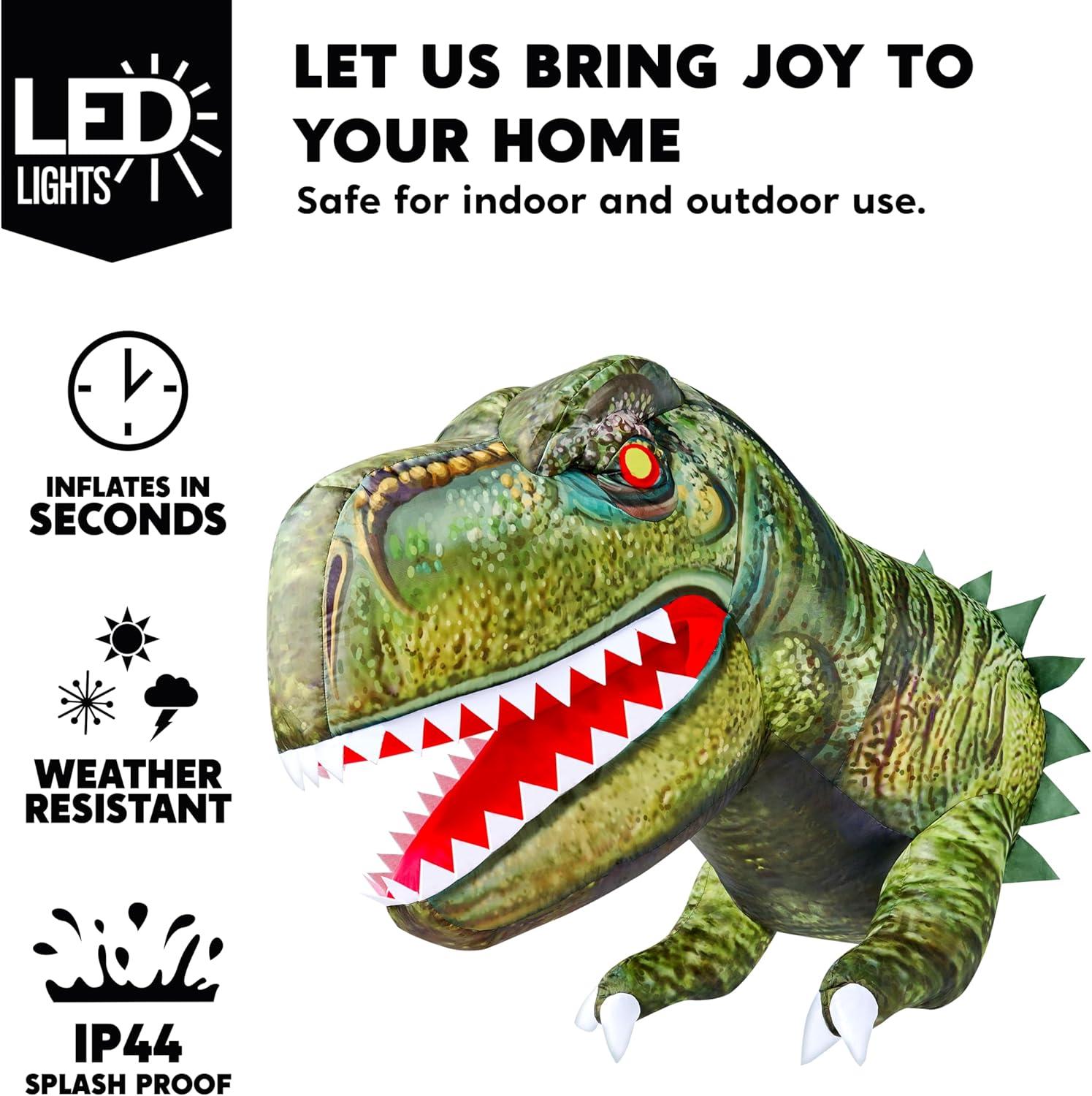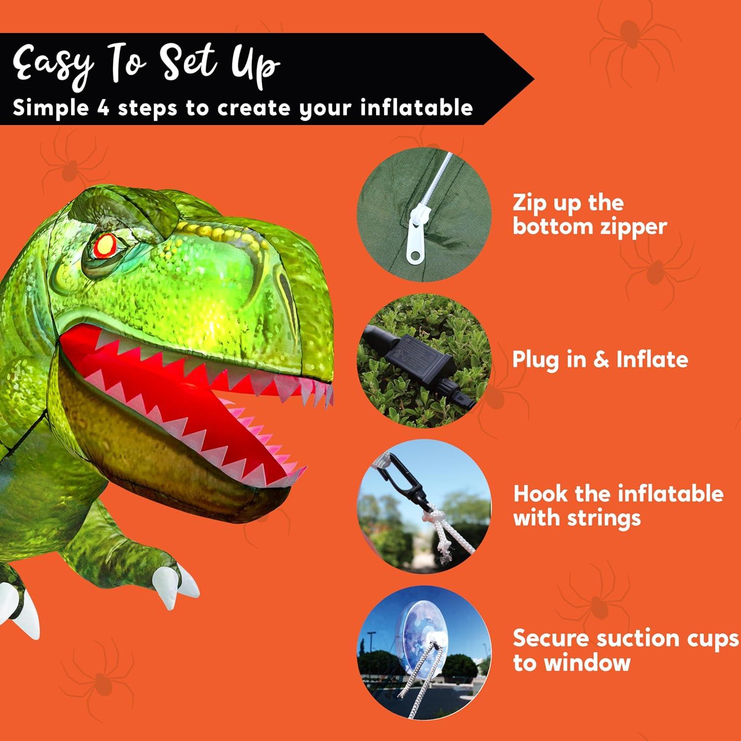 Powerful Function. Our Halloween inflatable window dinosaur decoration features built-in LEDs lights that enhance its visual effects with bright lights. The lights intensifying its menacing appearance and enhancing the overall spooky vibes of your Halloween setup.