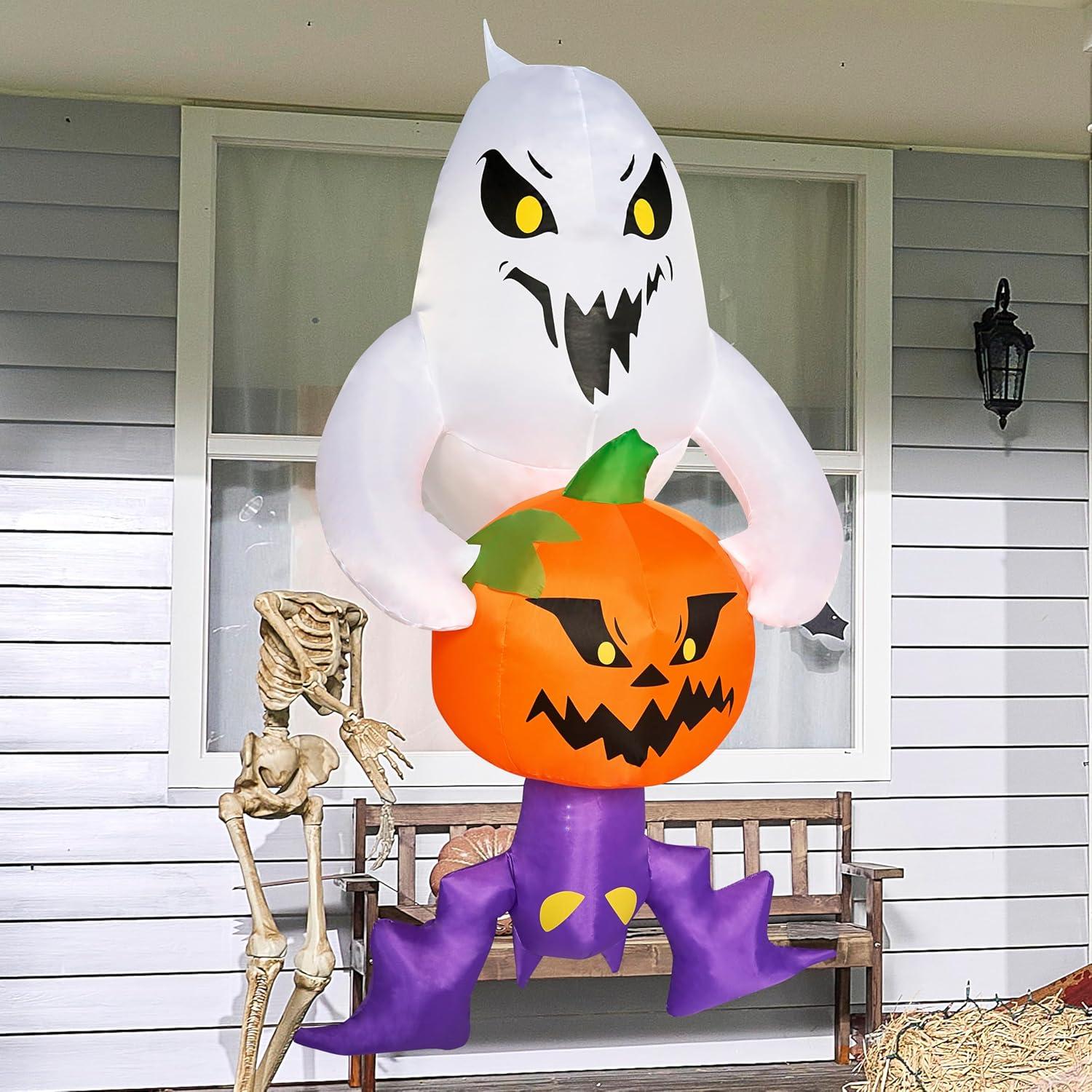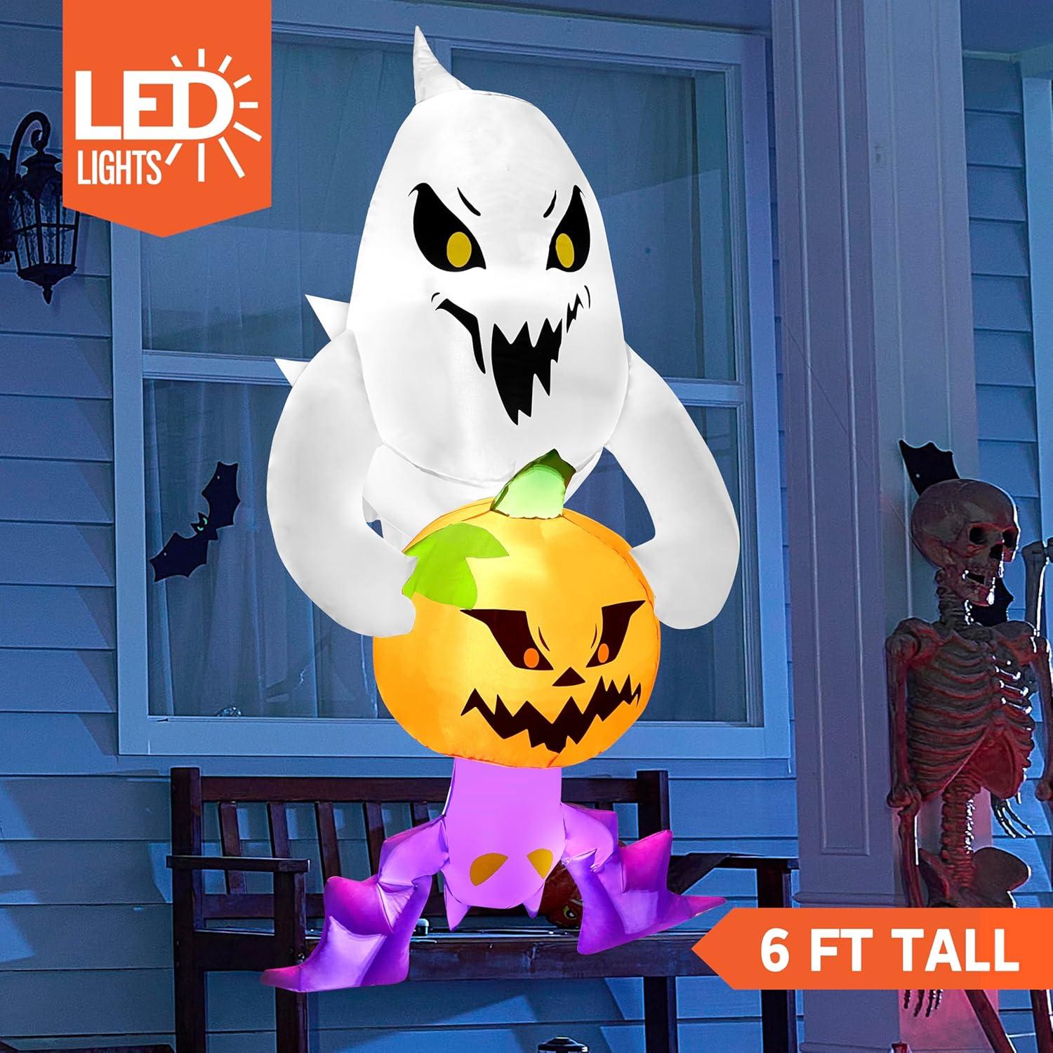 Joiedomi 6 FT Halloween Inflatables Outdoor Decorations, Blow Up Ghost Inflatable Decor, Inflatable Ghost with Built-in LEDs for Halloween Window Decorations