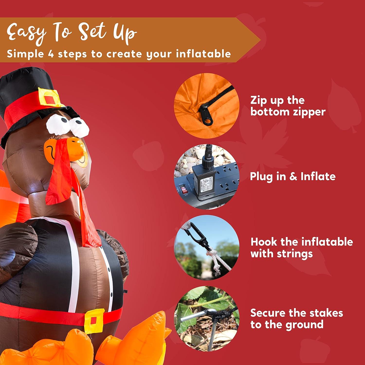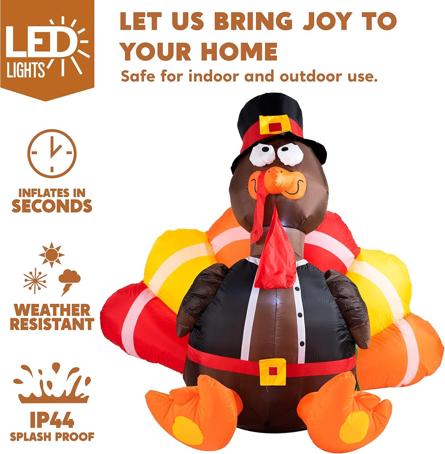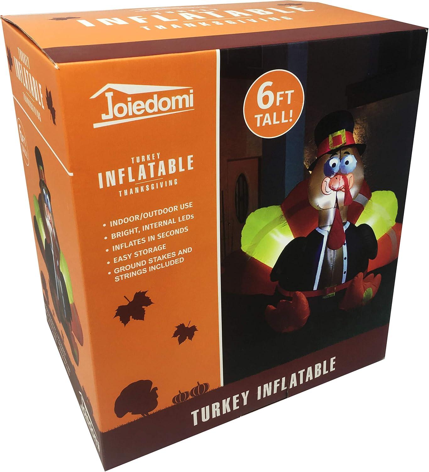 Joiedomi 6 FT Thanksgiving Inflatable Turkey Decorations, LED Light Up Turkey with Pilgrim Hat, Blow Up Decor for Thanksgiving Outdoor Decorations, Halloween Inflatable for Yard Garden(Turkey with Pilgrim Hat)