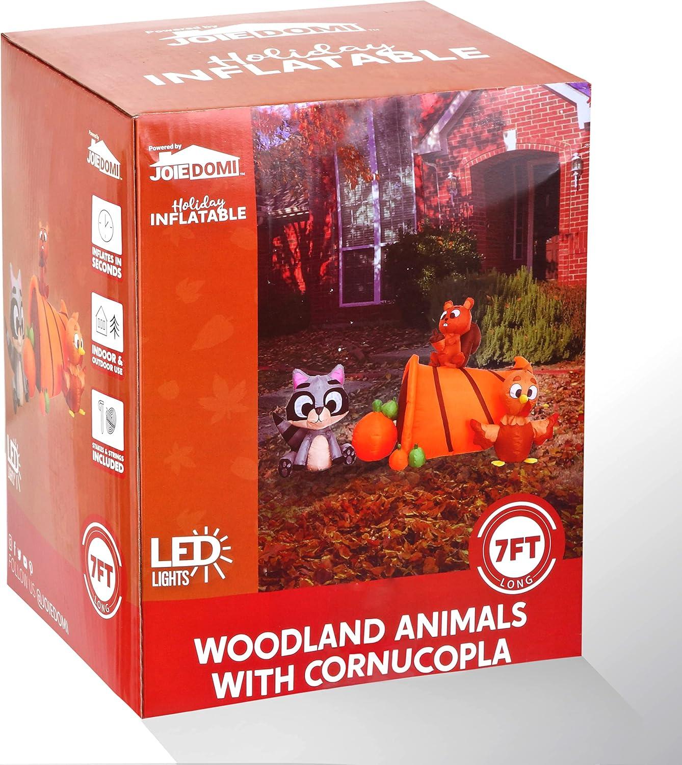 7 Feet Long Woodland Animals With Cornucopia Inflatable comes with an extended cord, ground stakes, fastened ropes, built-in sandbags, and a plug with UL certification.