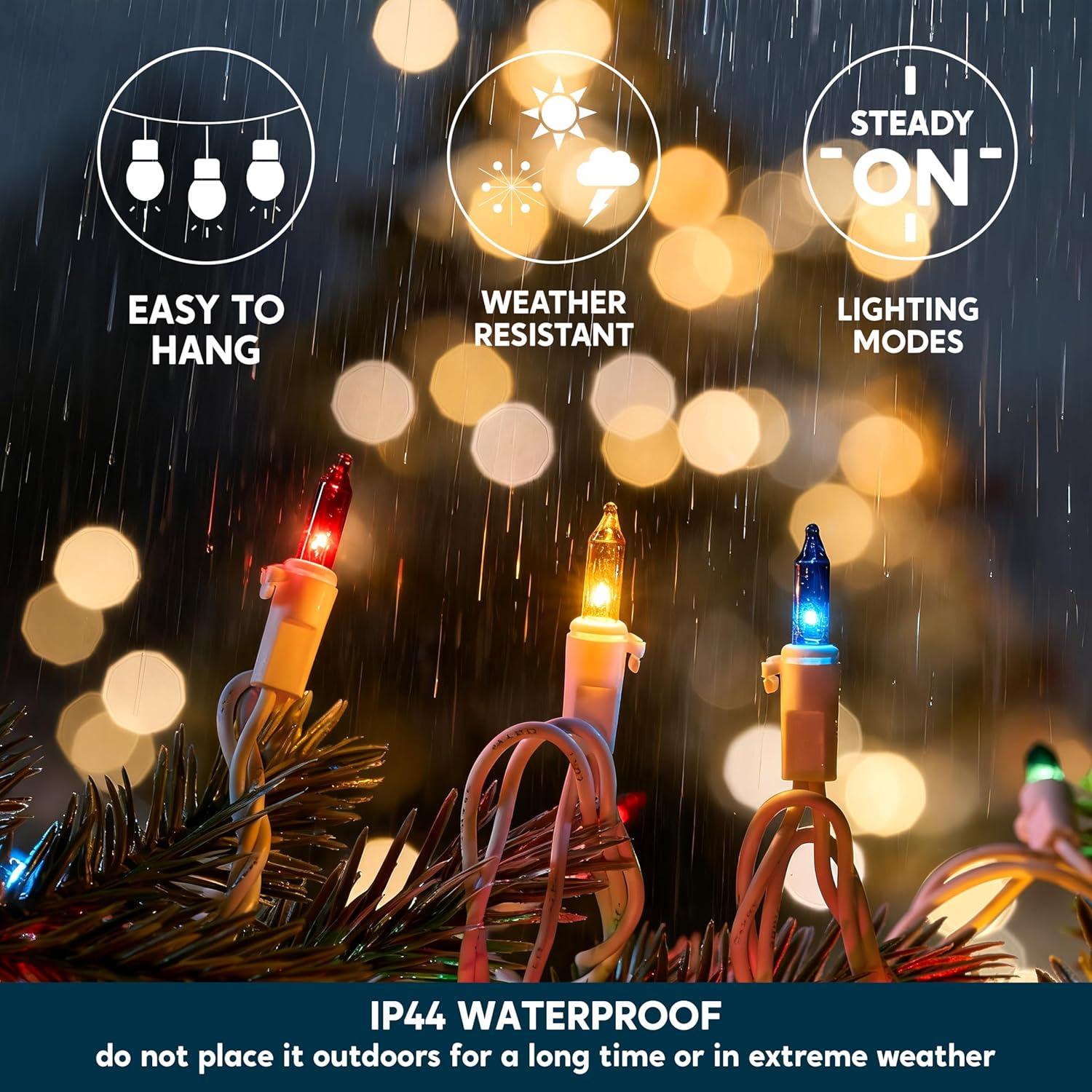 Connect Up to 5 Sets for Expansive Displays. Maximize your decorating power! These connectable Christmas lights feature end-to-end connectors, allowing you to link up to 5 sets for over 100 feet of continuous lighting. Perfect for covering large outdoor areas, staircases, or hallways without multiple power sources.