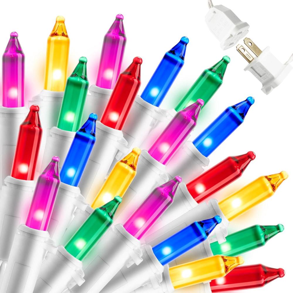 Super Value Pack: 100 Warm White Bulbs on 21.4ft Wire.Get brilliant coverage with 100 warm white T5 bulbs on a 21.4 ft white wire, offering a lighted length of 19.4 feet with 2.36-inch spacing. These high-voltage Christmas lights provide dense, vibrant illumination perfect for wrapping trees, lining roofs, or decorating mantels with a classic holiday glow.