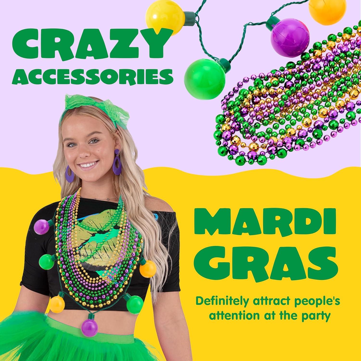Easy to Wear: This Mardi Gras Bead Necklace Bundle Set are easy to wear and won't weigh you down as you dance and celebrate the night away.