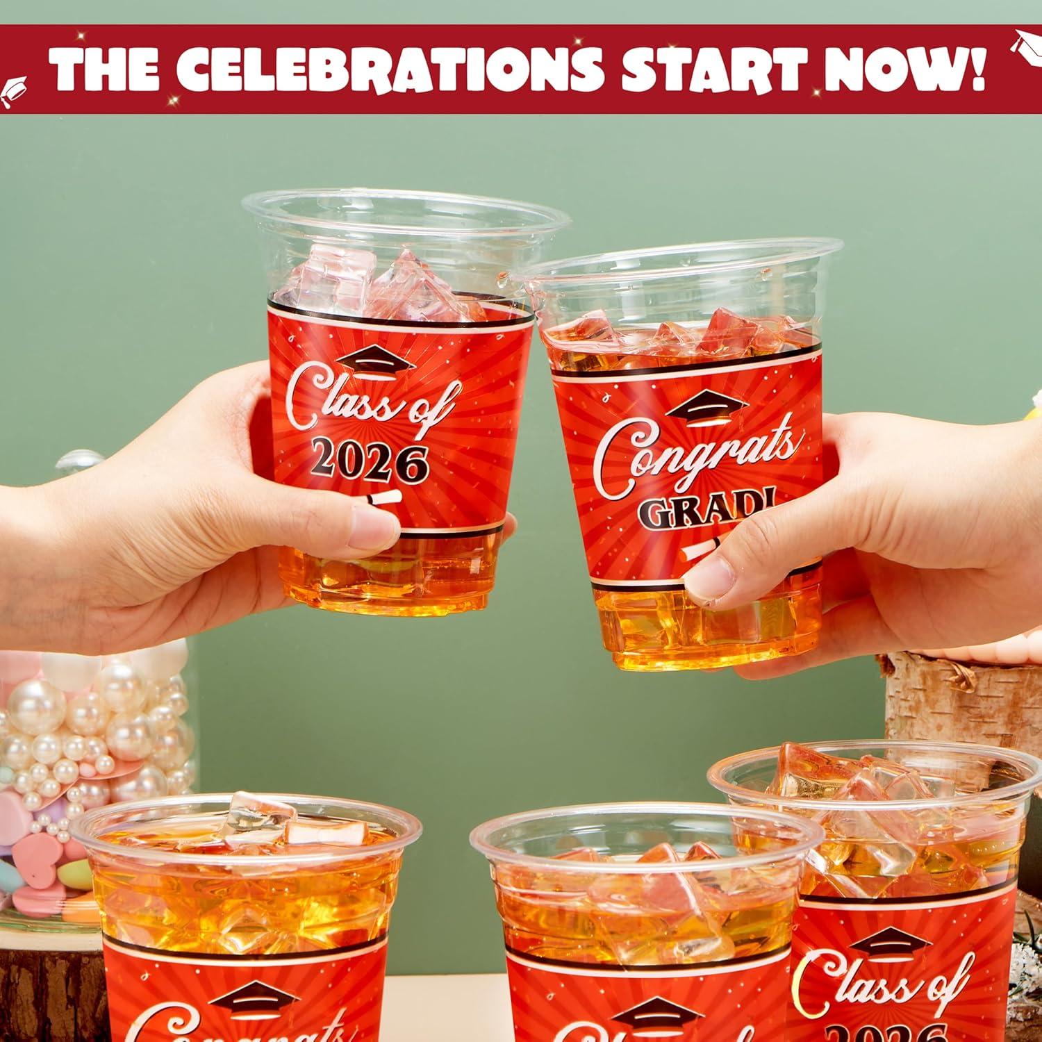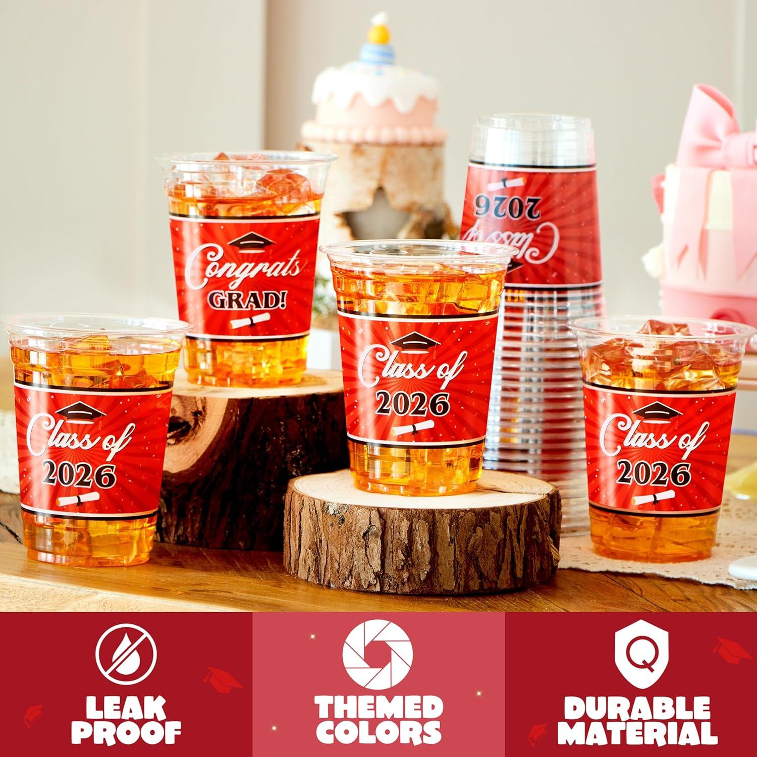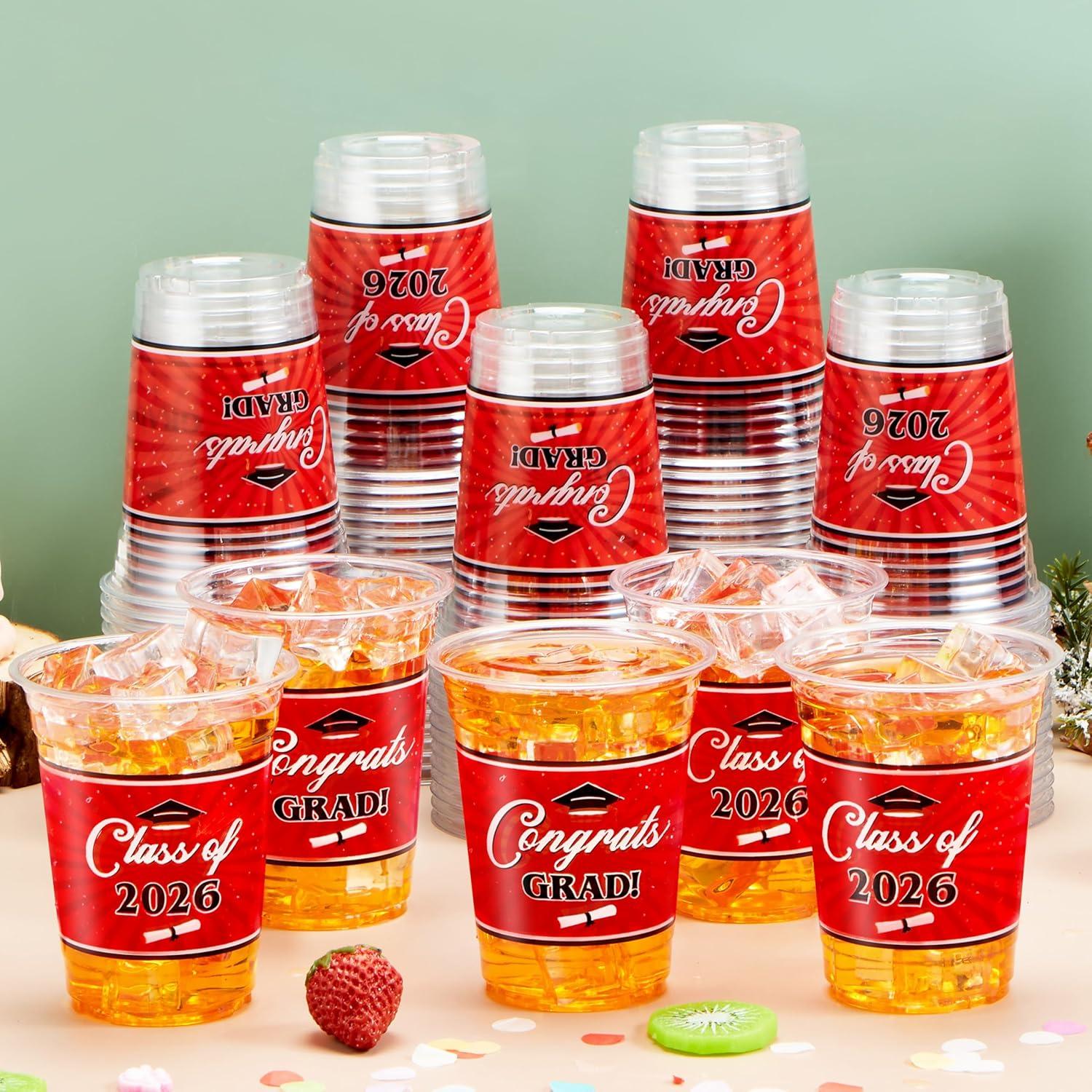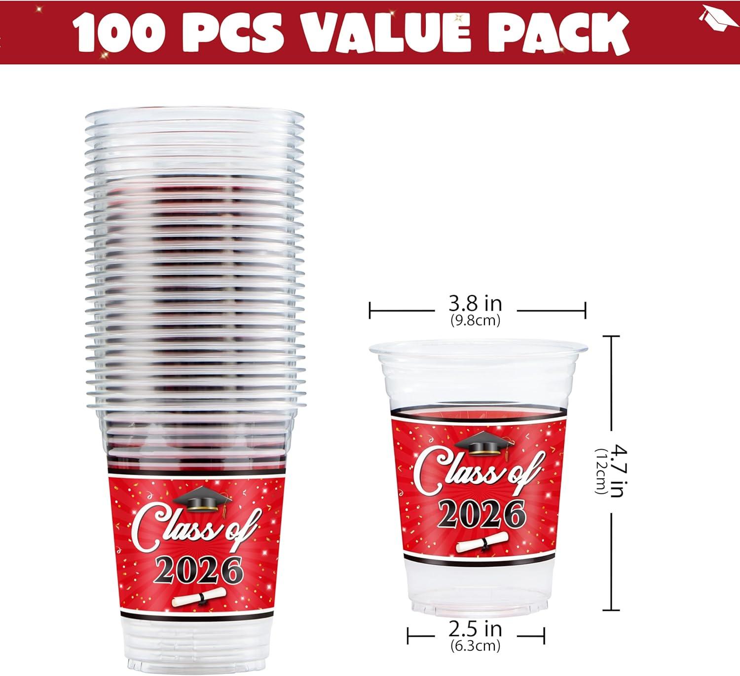 JOYIN 100 Pcs 16oz Graduation Party Plastic Cups (Blue), Grad Disposable Cups for Class of 2026 Graduates, PET Cup Tableware Bulk for 2026 High School College Graduation School Grad Party Supply Decor(Red)