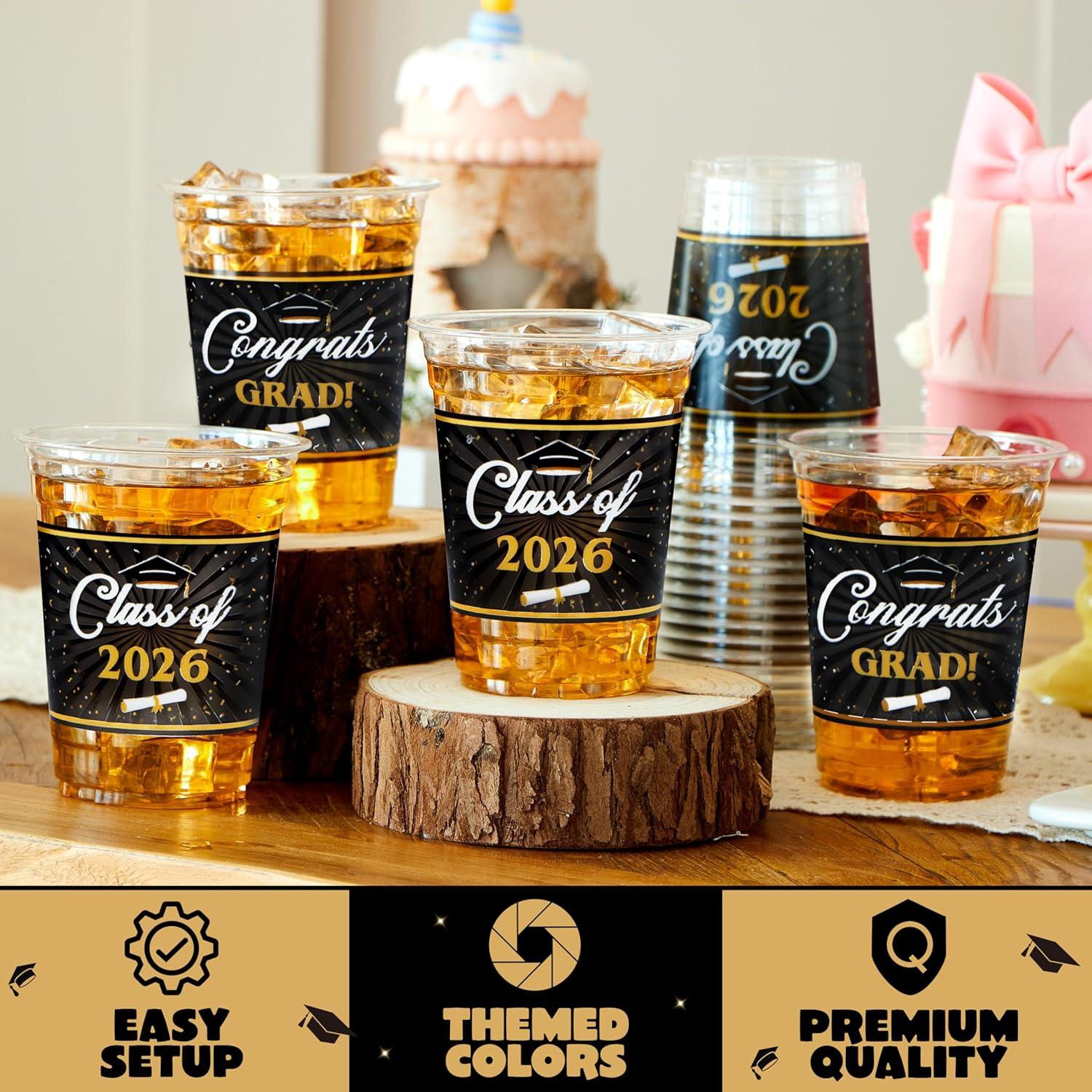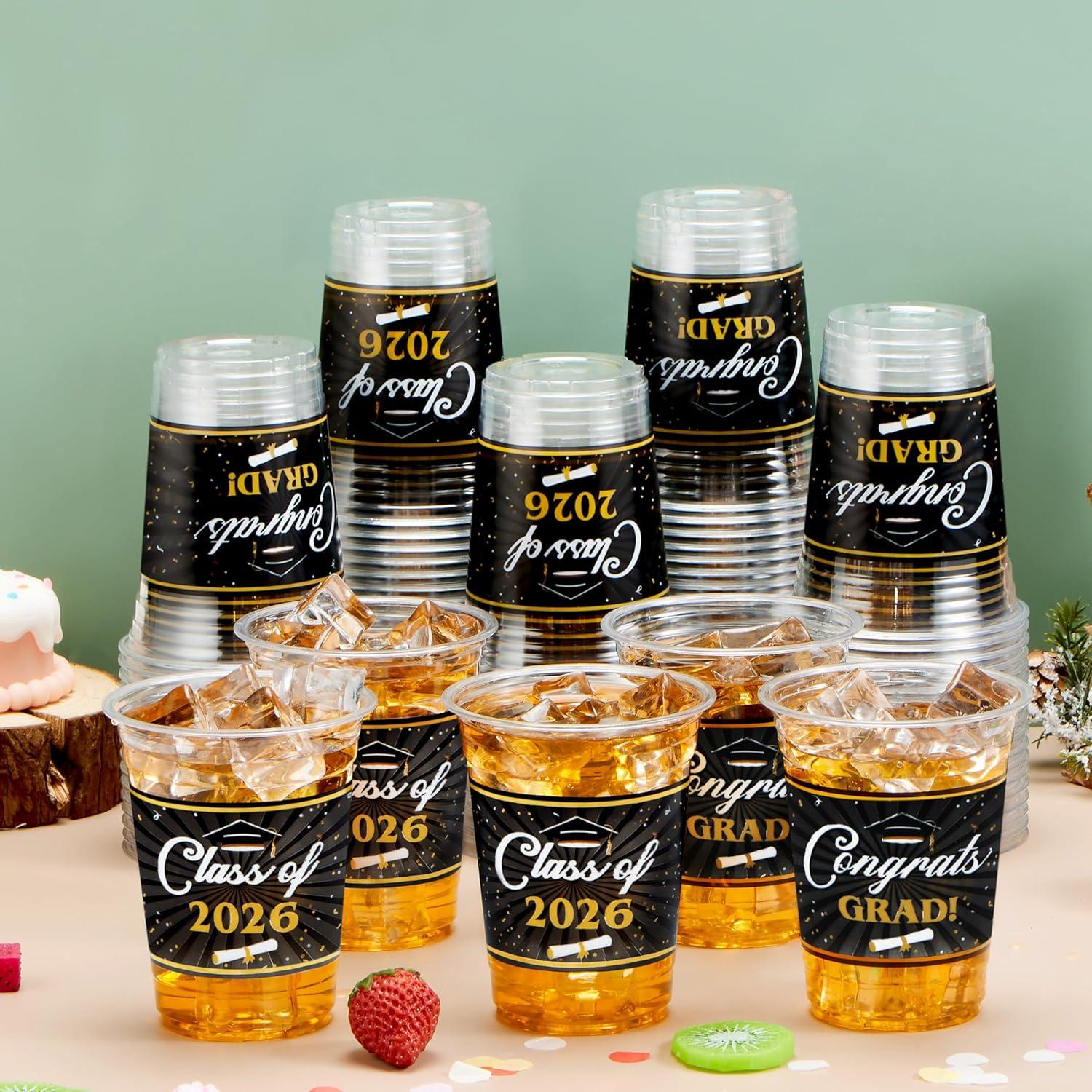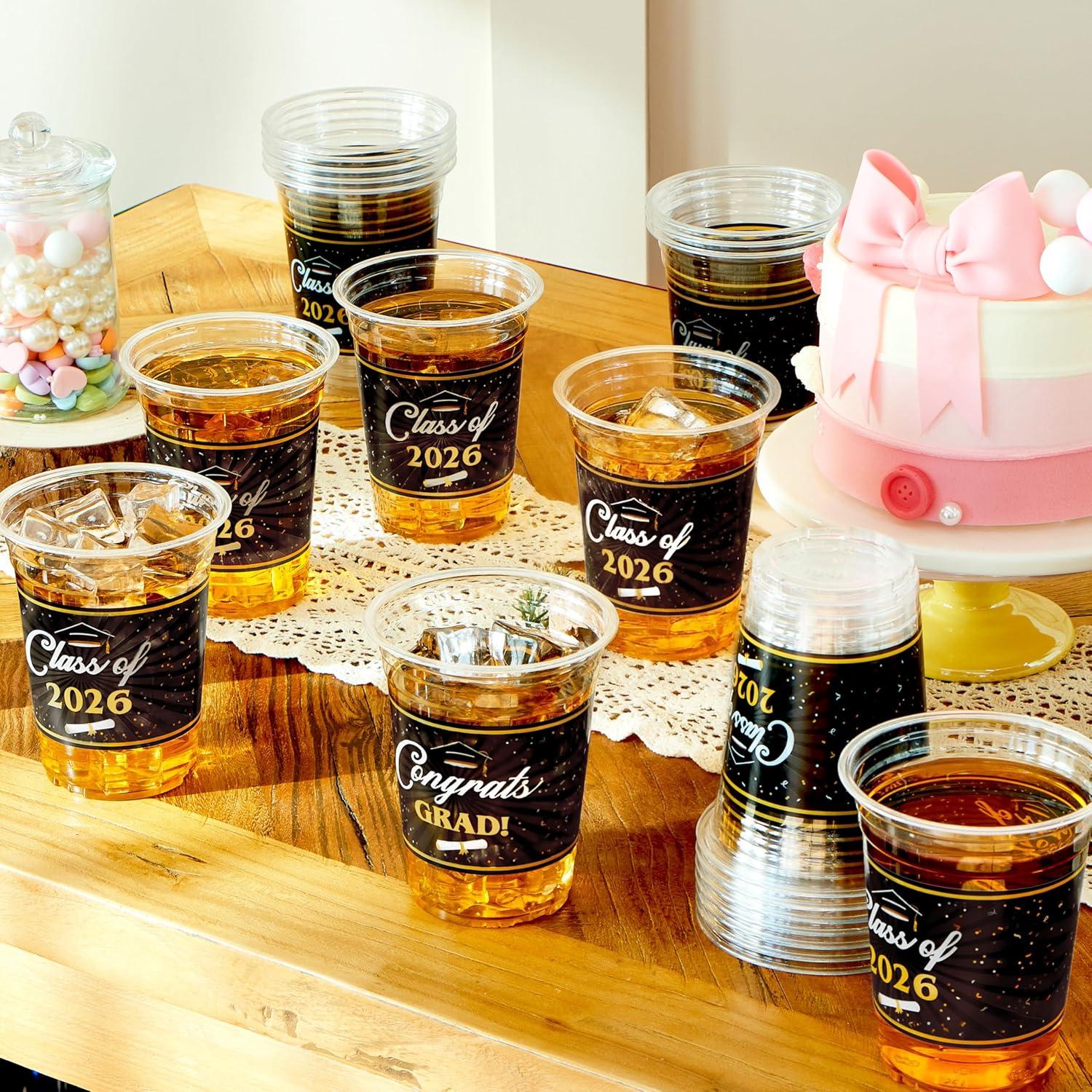 Festive Design: Featuring classic graduation and comes in two different designs with slogans like “Congrats Grad!” and “Class of 2026,” our Disposable Cup Set is a fantastic decor for your 2026 graduation party supplies!