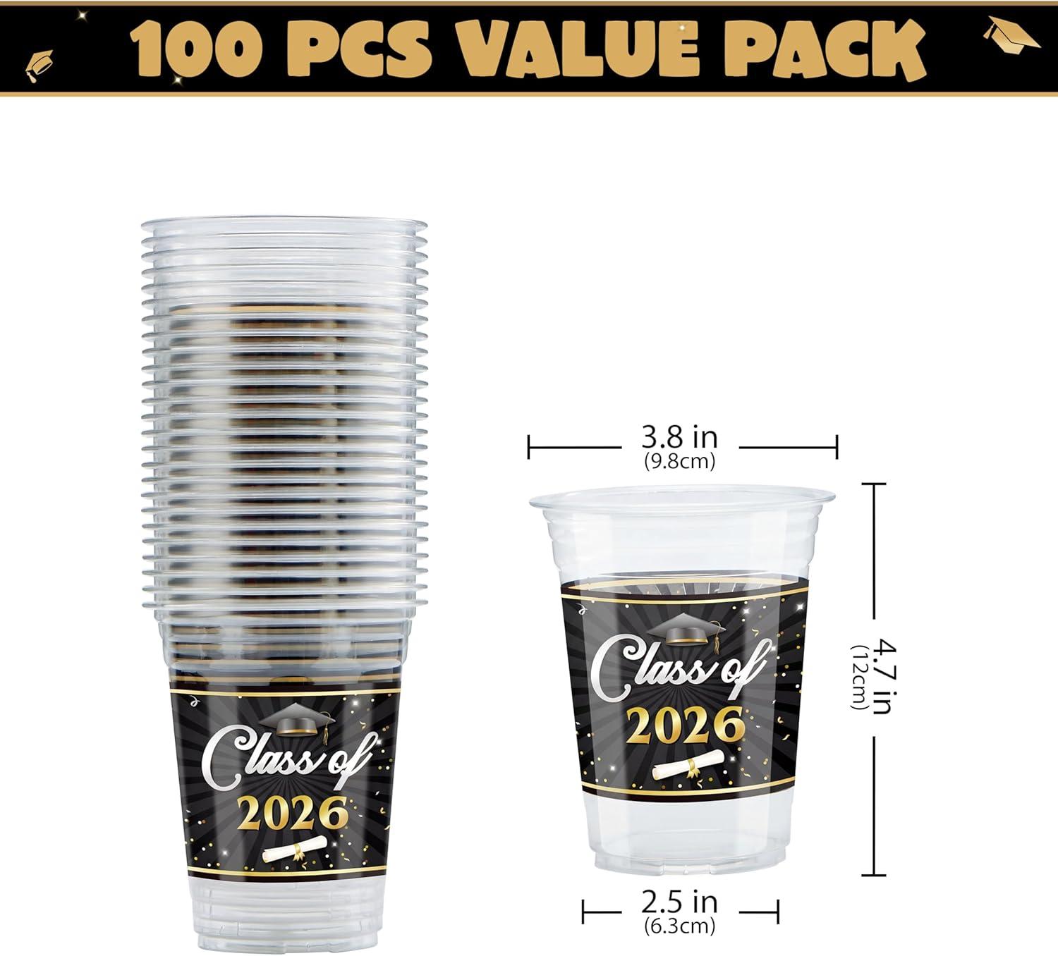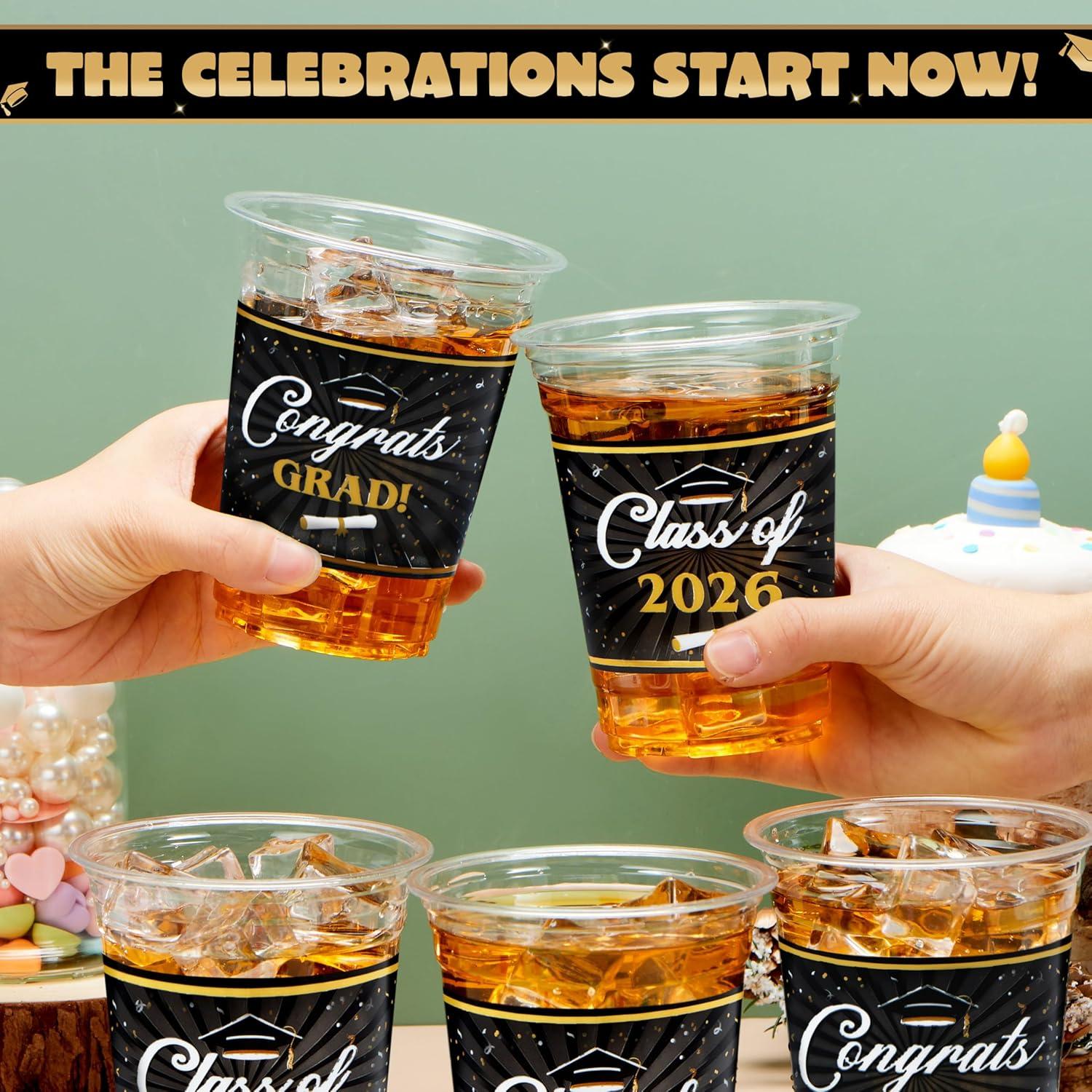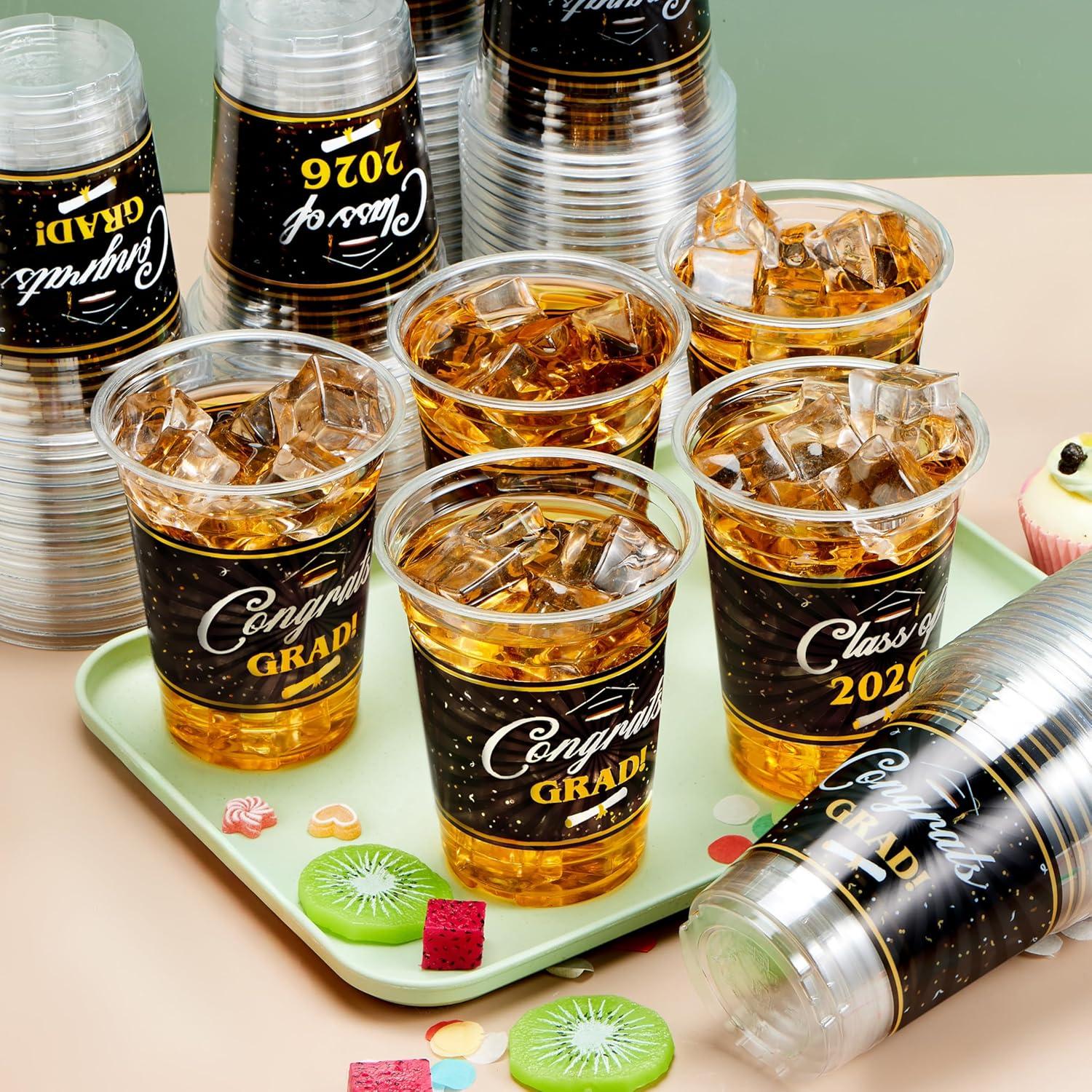 Festive Design: Featuring classic graduation and comes in two different designs with slogans like “Congrats Grad!” and “Class of 2026,” our Disposable Cup Set is a fantastic decor for your 2026 graduation party supplies!