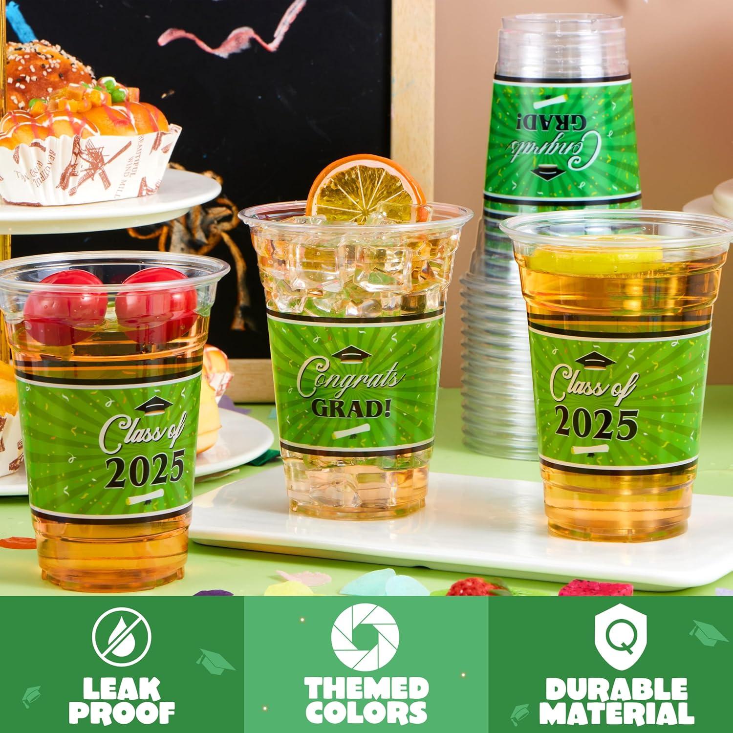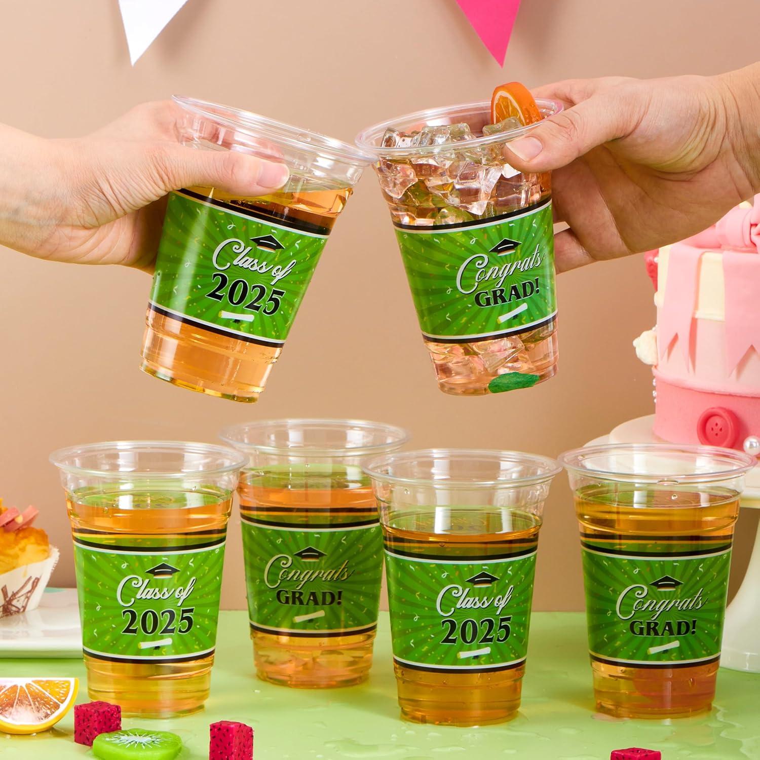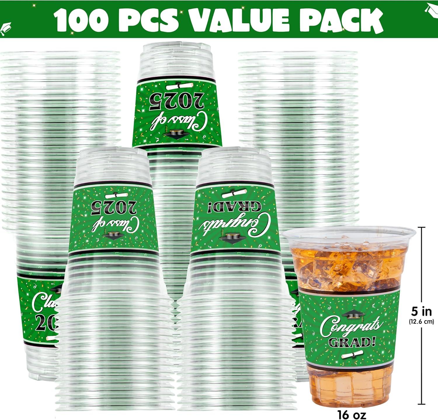 JOYIN 100 Pcs 16oz Graduation Party Plastic Cups (Maroon), Grad PET Cup Tableware Bulk for Class of 2025 Graduates, Disposable Cups for 2025 High School College Graduation School Grad Party Supplies(Green)