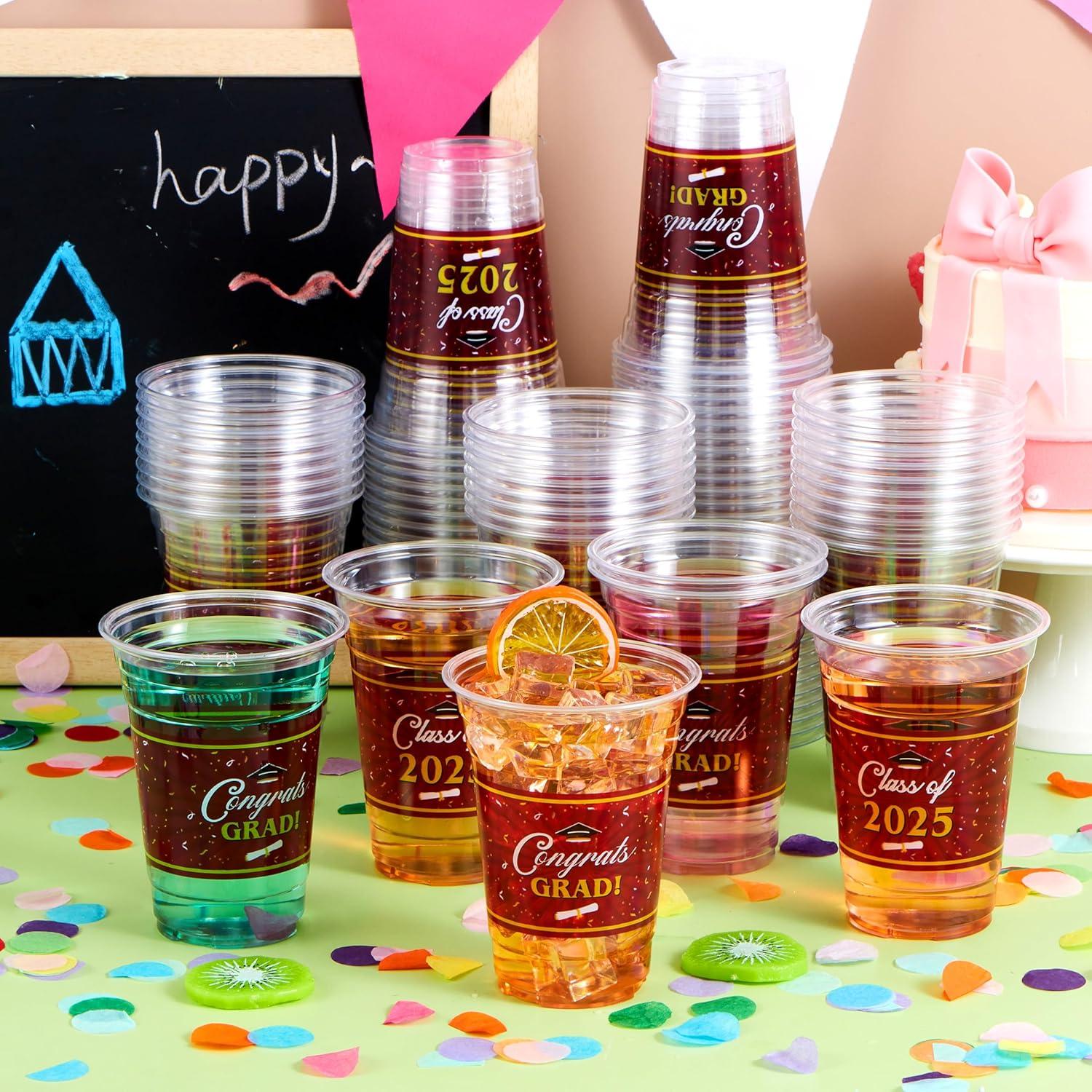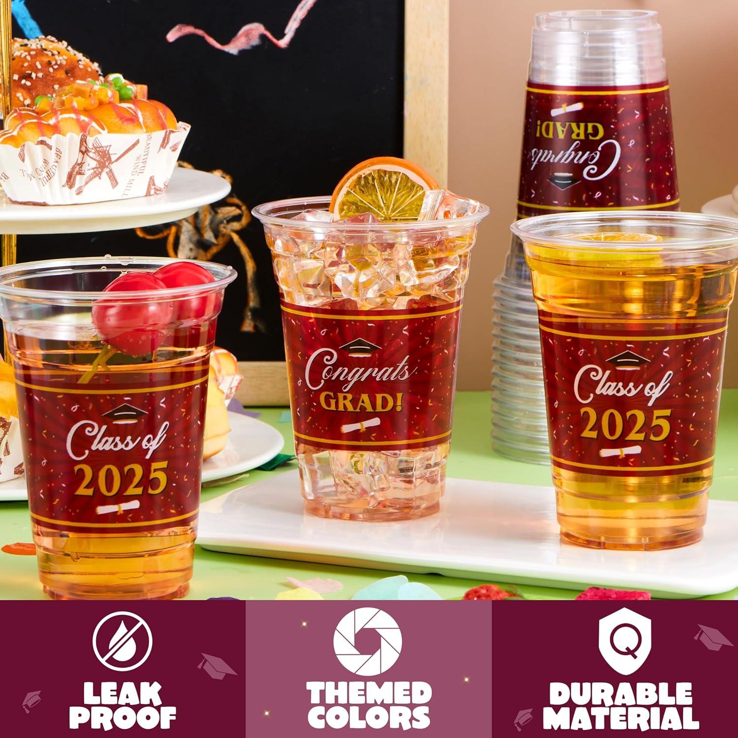 Festive Design: Featuring classic graduation and comes in two different designs with slogans like “Congrats Grad!” and “Class of 2025,” our Disposable Cup Set is a fantastic decor for your 2025 graduation party supplies!