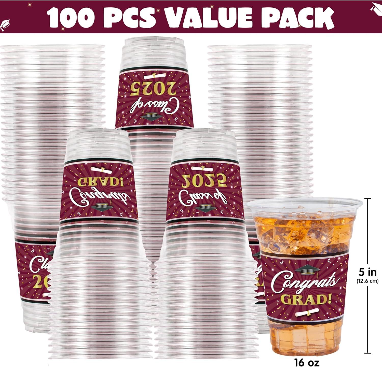 Super Value Package: Our Grad Cups Set includes 100 pieces of 16oz disposable graduation cups in various fun designs—ideal for making your Graduation Season a blast!