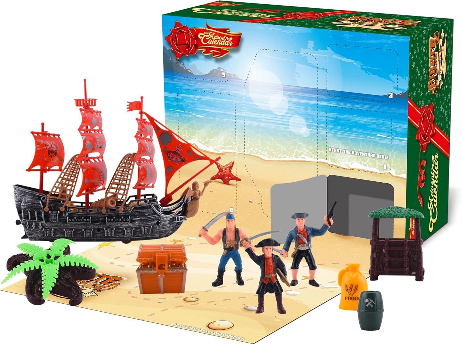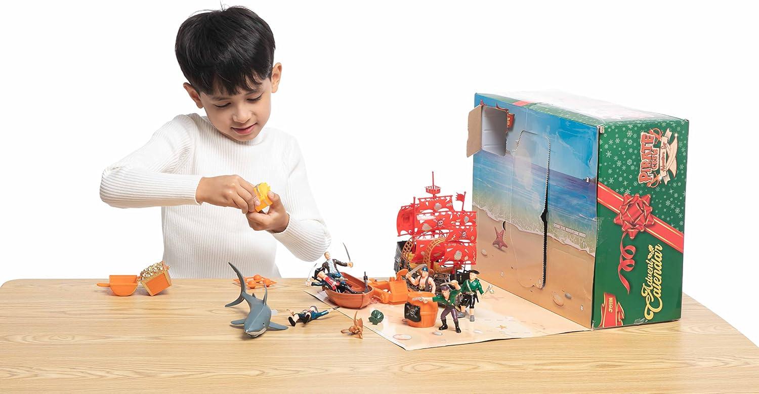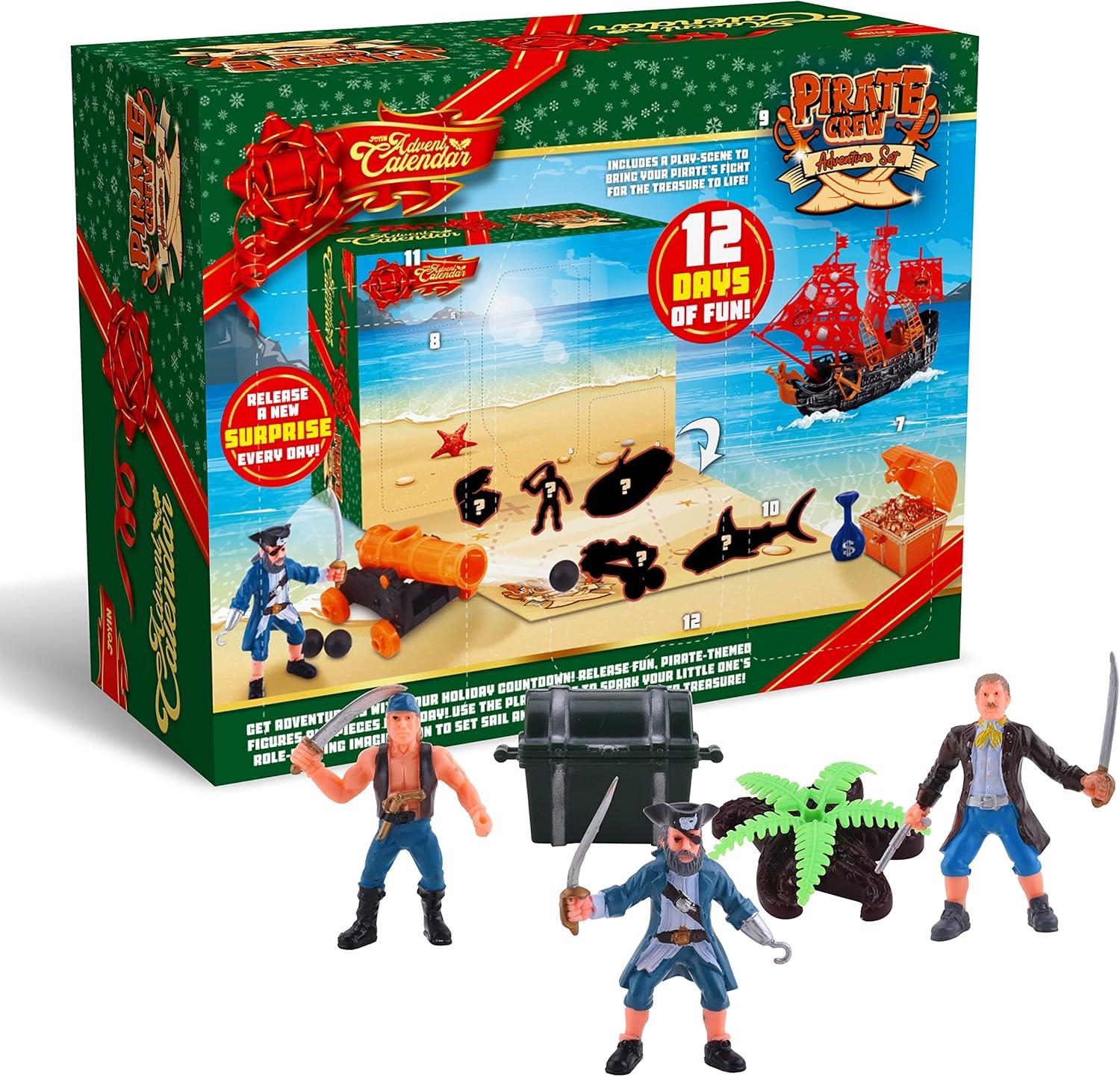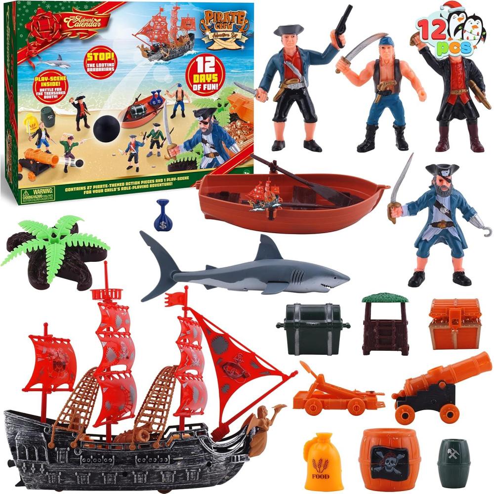 Super Value Pack: The Advent Calendar includes 12 days surprise pirate action figures playset advent calendar with 12 different pirate action figures, and fighting accessories.