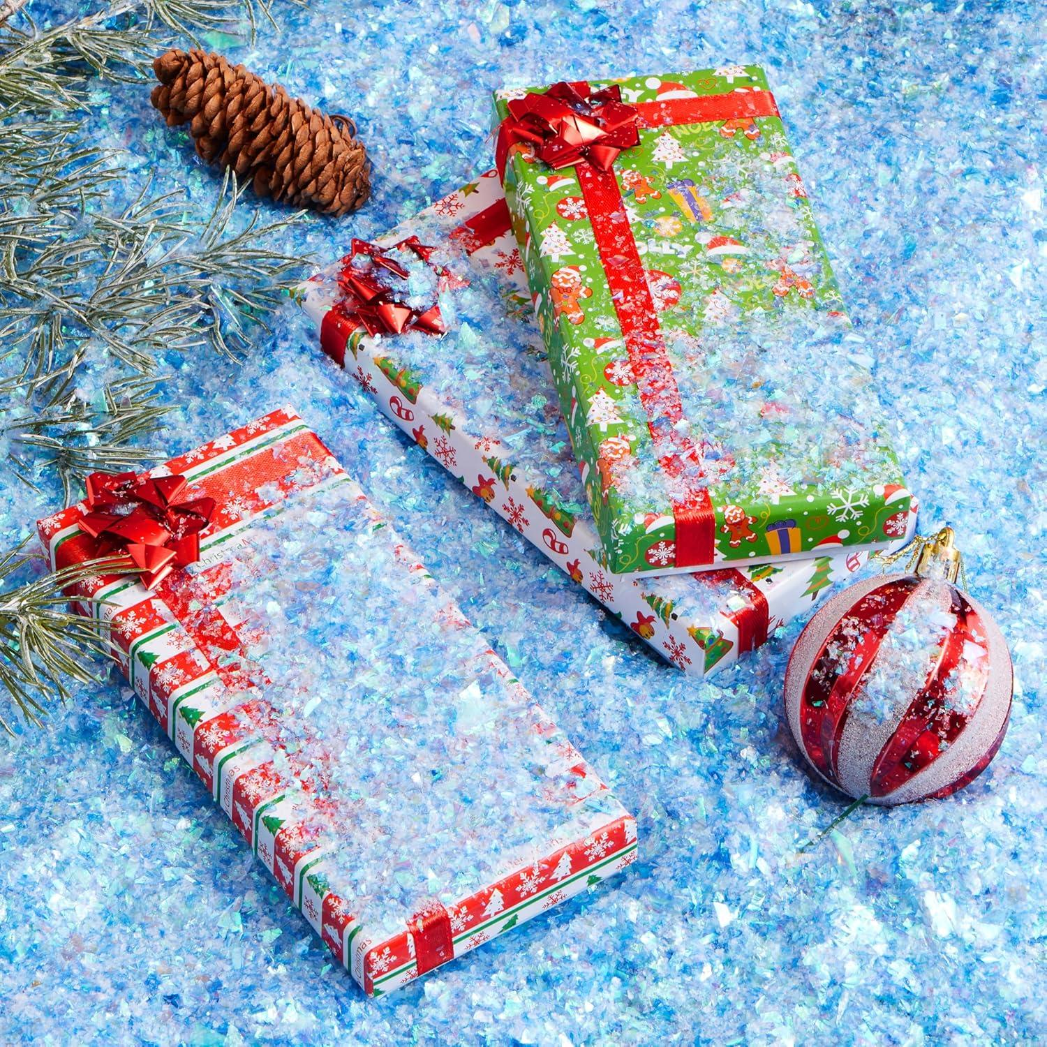 Wide Application: Our twinkles Christmas snow and fake snow for crafts is ideal for Christmas parties, fake snow for christmas tree, party favors, holiday displays, and any winter-themed activities. This versatile fake snow can be used for decorating Christmas trees, creating snow scenes, filling gift bags, and any winter-themed activities or holiday displays.