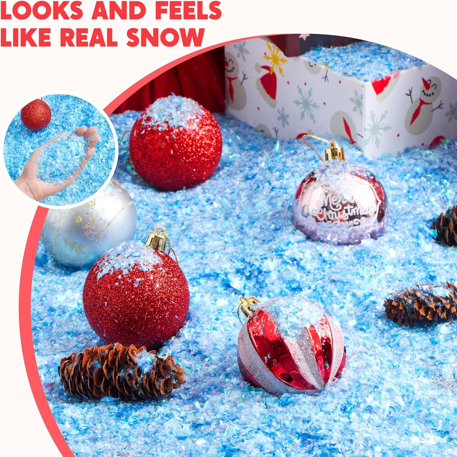 Easy to Use: Simply put the faux snow to create a magical, snowy effect. Its easy application makes it perfect for DIY projects, adding a festive touch to your home decor, and inspiring creative holiday ideas. Designed for repeated use, this fake snow decoration and artificial snow for crafts can be stored and reused for many holiday seasons, providing long-lasting value and enjoyment.