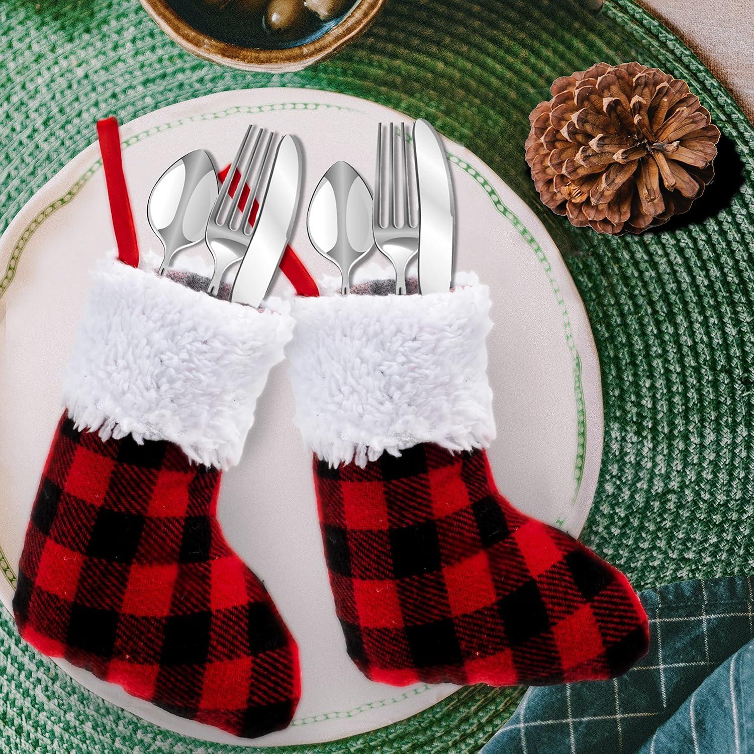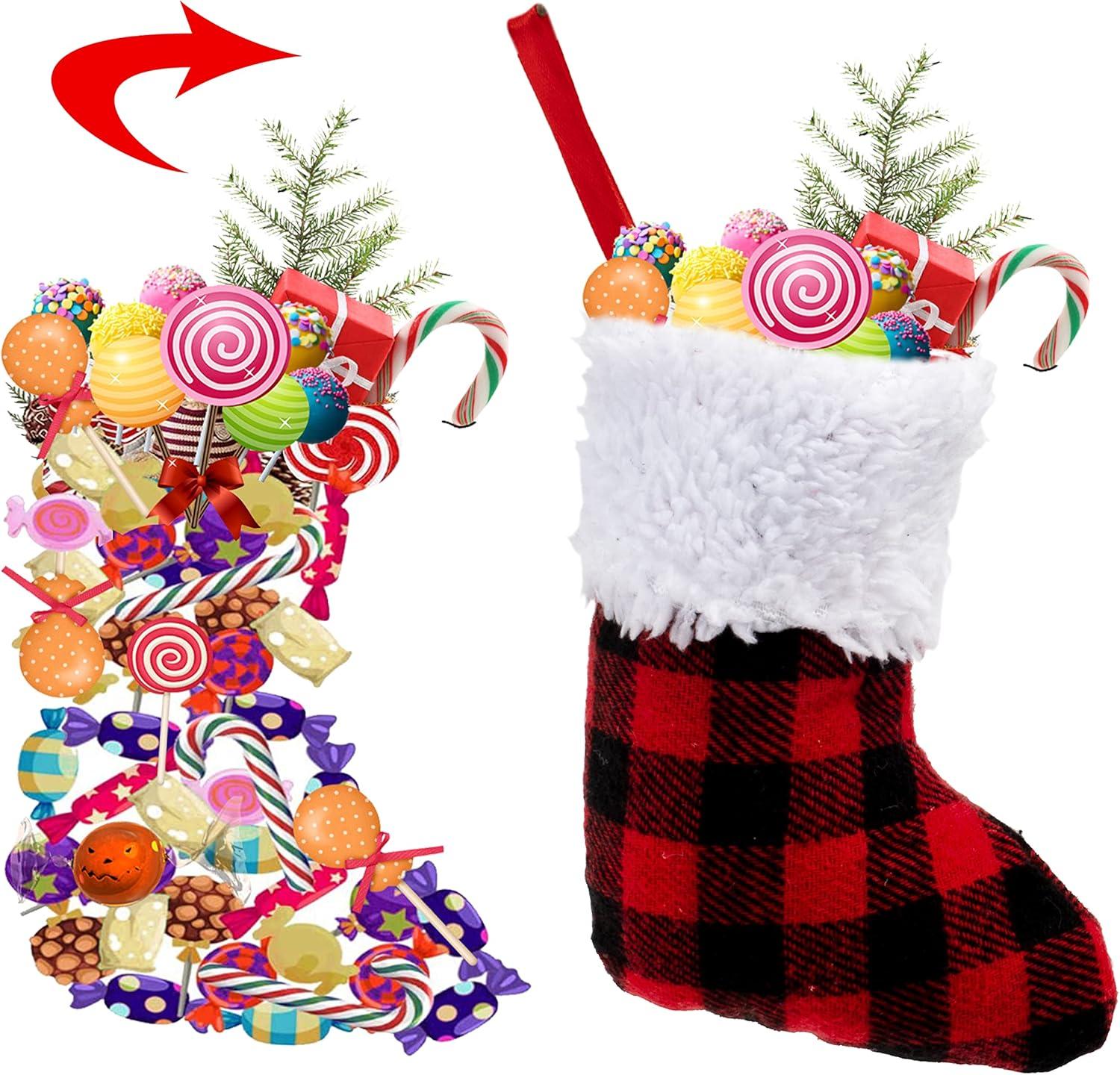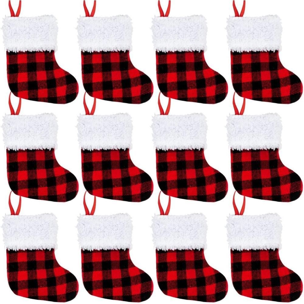 SUPER VALUE PACK. Our Stocking Plaid for Christmas includes 12 Packs Christmas Stockings, 5Inch Red Black Plaid Christmas Stockings. These awesome plaid stockings will enhance the Christmas atmosphere at home or at any Christmas Set-up.