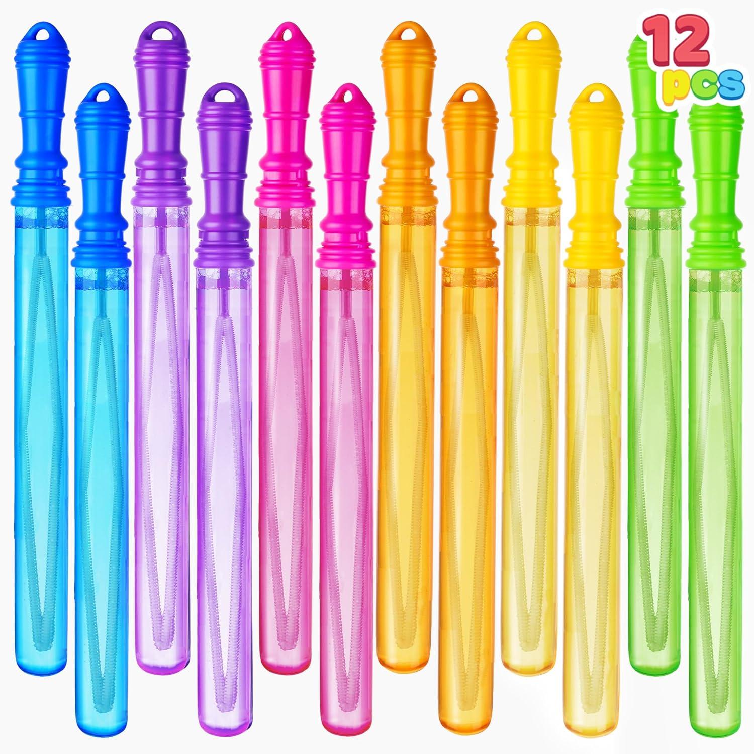 AWESOME PACKAGE: Immerse yourself in a kaleidoscope of bubbles with our 12 Packs 7 oz giant bubble wands, with 12 PCS 12 mL (0.4 Fl Oz) concentrated bubble solution, featuring 6 vibrant colors for a whimsical and enchanting play period experience.