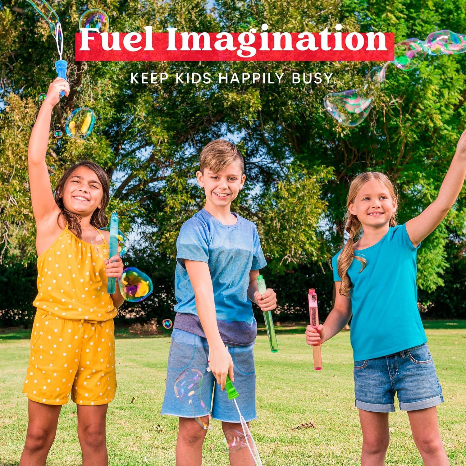 GIANT BUBBLES: Each bubble wand measuring 17″ for giant bubbles that captivate and delight. Take the bubble excitement outdoors with our jumbo bubble wand set, creating a magical and playful atmosphere for memorable moments.