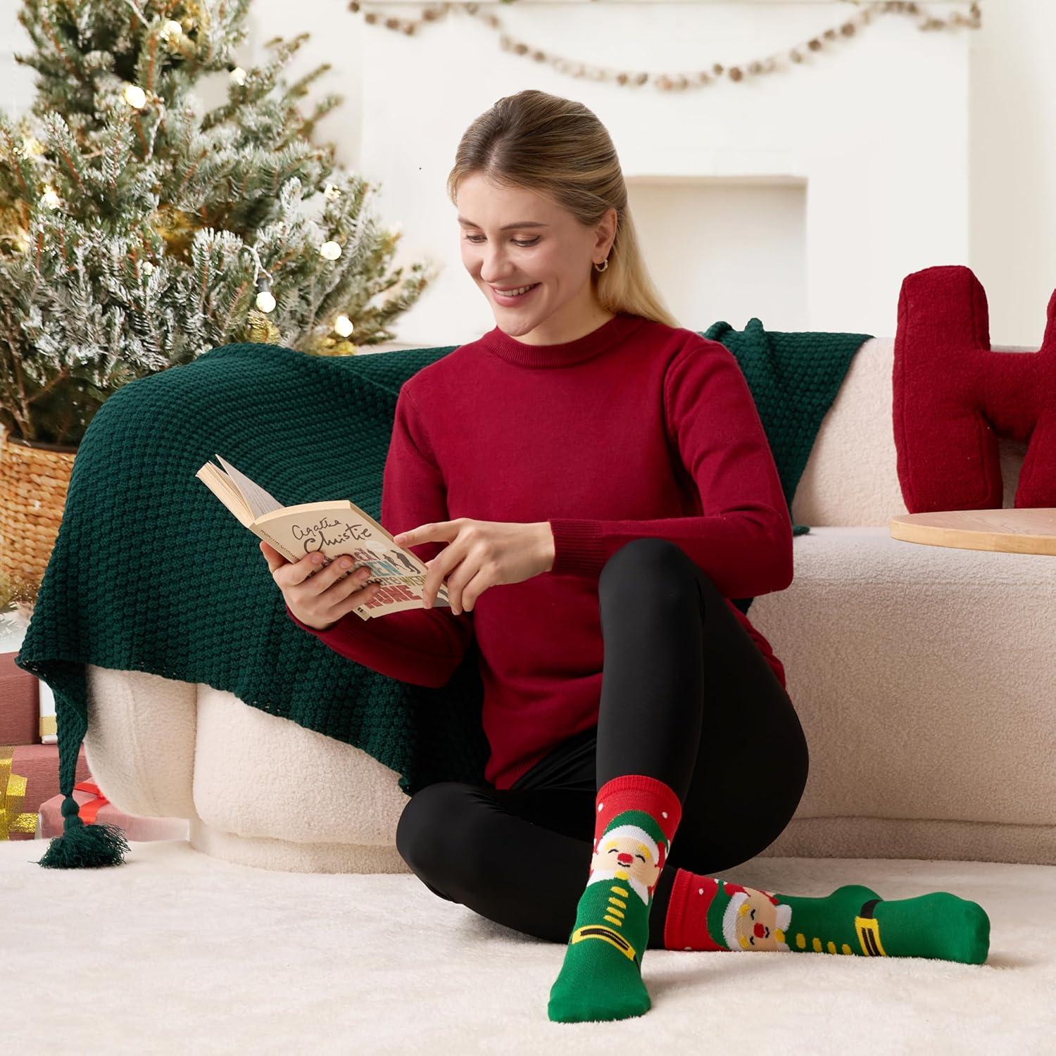 JOYIN 12 Pairs Christmas Socks, Christmas Crew Socks for Women, Holiday or Birthday Gift(Green Mix)