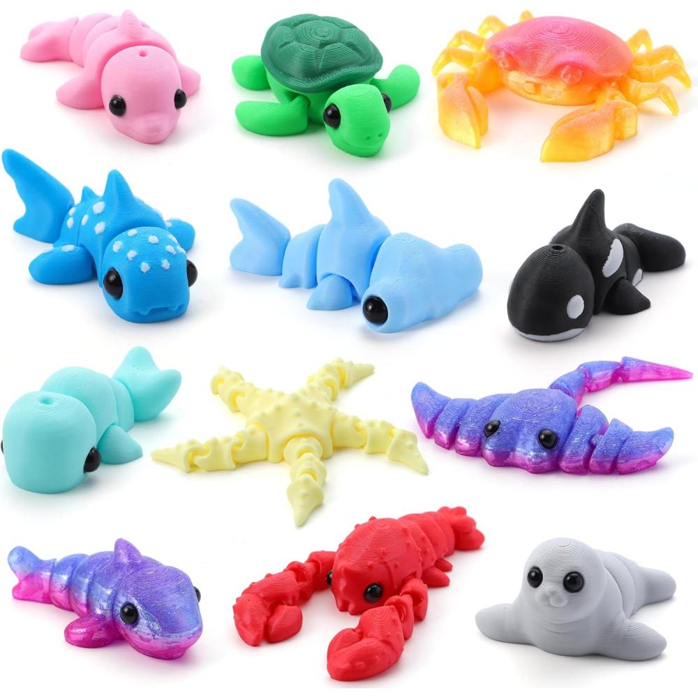 JOYIN 12 Pcs 3D Printed Animals Set, Mini Animals 3D Printed Toys – Cute Articulated Flexible Figurines Fidget Toys for Party Favors Birthday Gifts Desk Pets Office Home Decor(Ocean Animals)