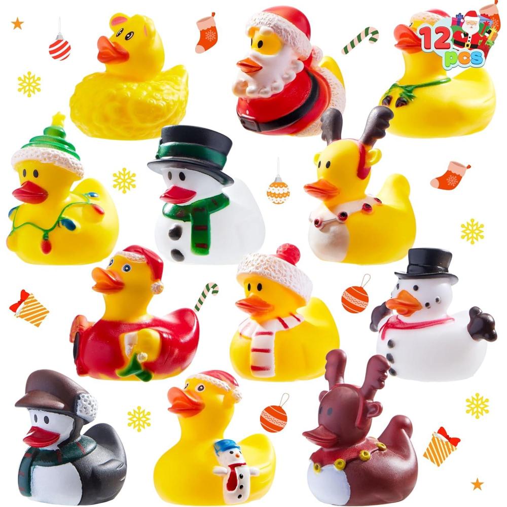 JOYIN 12 Pcs Christmas Rubber Duck Bath Toys for Christmas Goodie Bag Stuffers and Baby Showers, Girls and Toddlers Christmas Party Favor Xmas Gifts