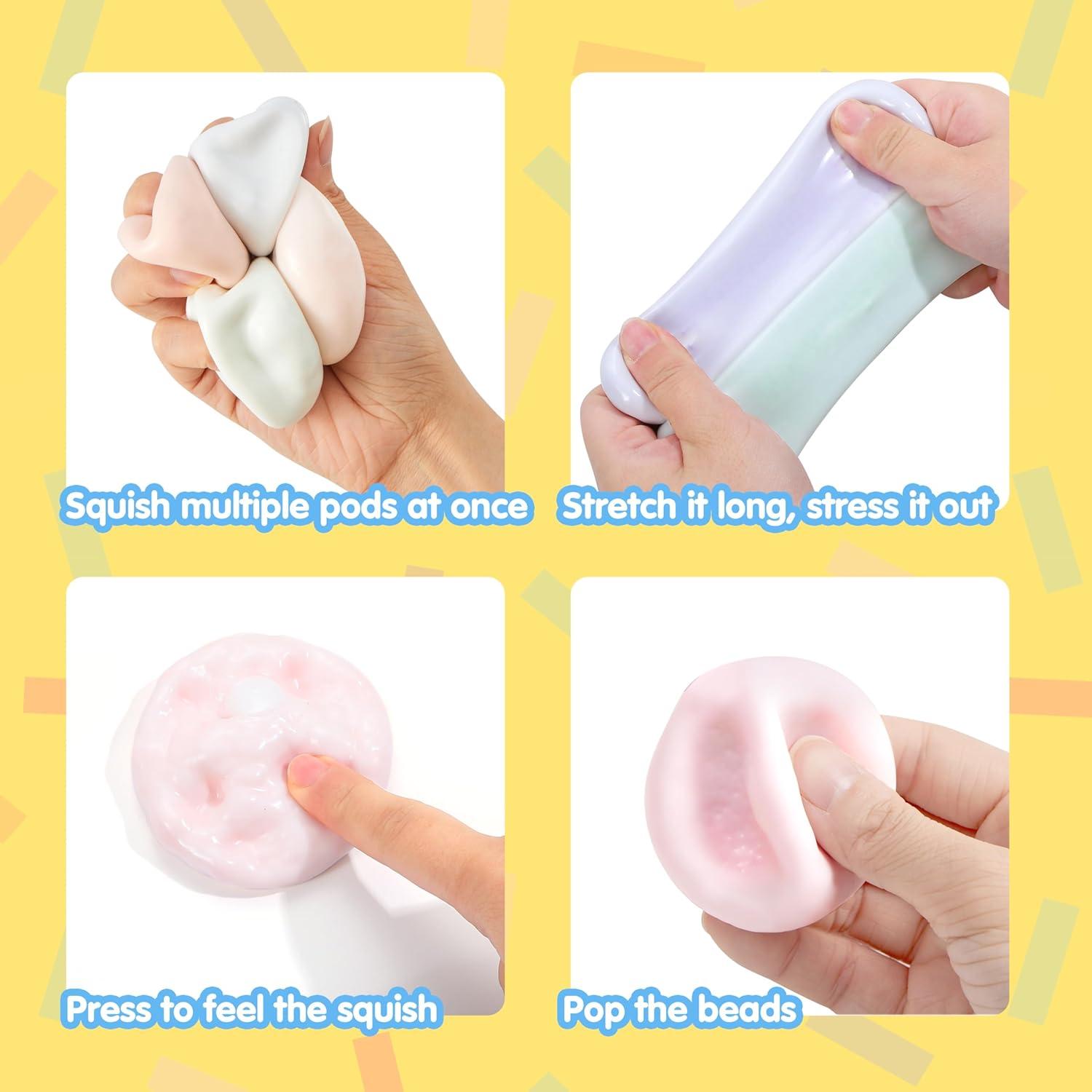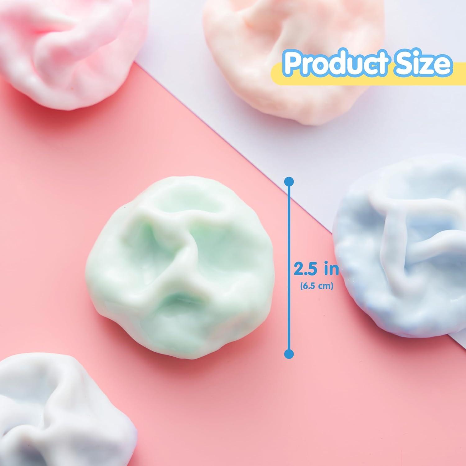 SUPER VALUE 12 PACK: Get fantastic bang for your buck! You'll receive a dozen awesome stress ball delights in this set. Features 4 beautiful Macaron colors. Perfect for sharing, gifting, or keeping handy wherever you need one! UNIQUE MULTI-SENSORY EXPERIENCE: Dive into a sensory adventure! These balls offer a satisfying tactile squish combined with a soothing “shhh” white noise – like a unique crunchy stress ball sound – when squeezed. This special combo triggers calming ASMR responses, helping to melt away stress and promote ultimate relaxation. SQUEEZABLE FUN: Your portable stress relief solution! These lightweight and perfectly sized squeeze toys are super easy to carry. Toss them in your bag, backpack, desk drawer, or pocket for instant calming and focus support wherever you are – great for travel, work, or school! EASY RE-INFLATION TIP: Uh oh, did your squeeze pal get a little too puffed up with excitement? No worries! Just find the tiny 'magic dot' on the surface, give it a super gentle poke with the NOT INCLUDED special needle (adult supervision recommended for use by children) to release excess air, and POOF! It's perfectly squeezable again! PERFECT FOR ALL AGES & NEEDS: These awesome toys are fantastic sensory tools. Ideal as stress balls for adults seeking anxiety relief or fun stress balls for kids needing focus aids. Looking for stress balls bulk? They make amazing party favors, classroom rewards!