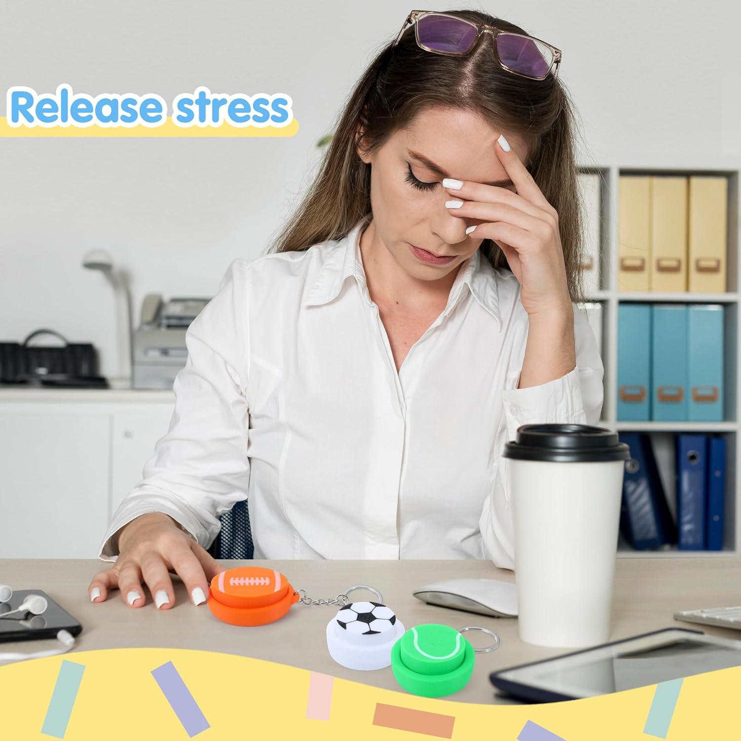 SUPER VALUE SET: Includes 12 pcs 3D printed fidget clickers toys with 6 different sporty designs—basketball, baseball, football, soccer, tennis, and volleyball—double the fun with two of each style Snap Stress Away: Each clicker fidget toys delivers a crisp, satisfying click that helps calm nerves,focus, and keep fingers busy—perfect for stress relief at school, work, or on the go EASY CARRY & TRAVEL-READY: The perfect tiny size to slip into a pocket or backpack! They're super convenient for on-the-go fidget fun or imaginative play anywhere, anytime BUILT TO LAST: Made with high-quality, durable materials, these 3D printed fidget toys can handle endless clicking, tossing, and twisting without breaking a sweat Perfect for Gifting & Party Favors: Whether you’re stocking stuffers, or classroom rewards, these colorful 3D printed fidget keychains are a guaranteed hit! Kids love sporty looks, and parents love how they promote focus and relaxation