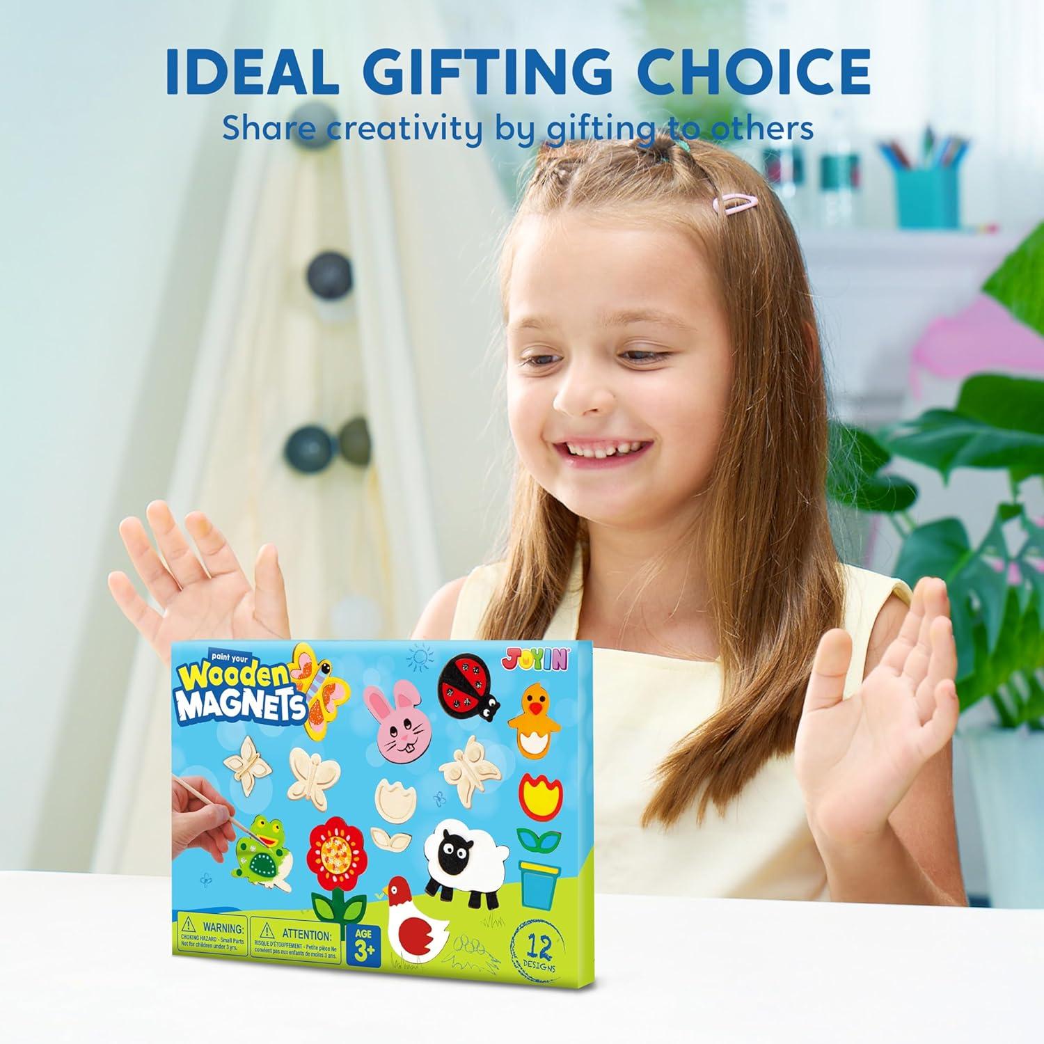 JOYIN 12 Wooden Magnet Creativity Arts & Crafts Painting Kit for Kids, Decorate Your Own Painting Gift for Easter Basket Stuffers, Birthday Parties and Family Crafts, Party Favors for Boys Girls(Nature)