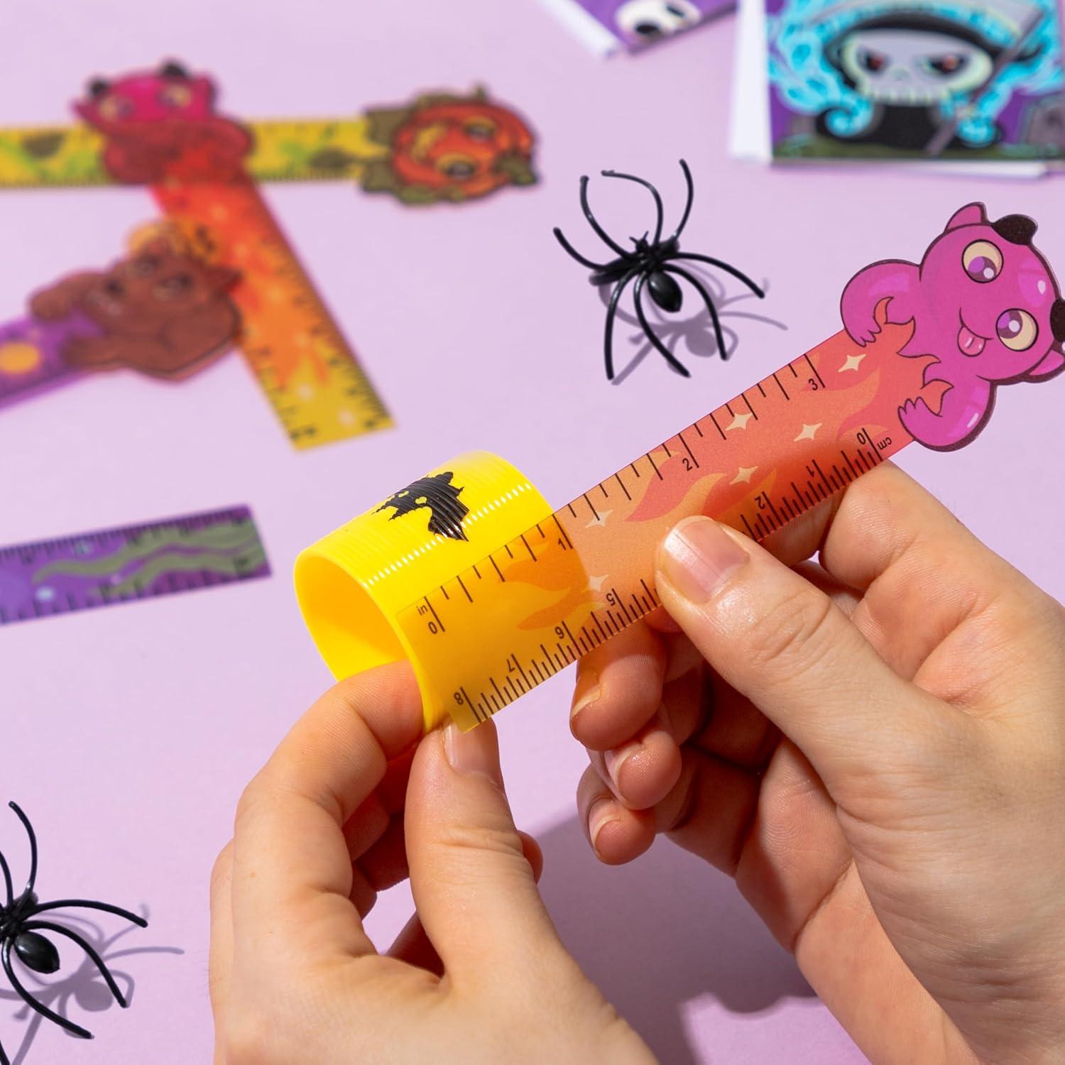 Value Pack. Our halloween bookmarks Stationery Set include 144 Pcs ruler bookmarks that come in 6 designs, including Halloween elements such as skeleton, pumpkin, devil, dinosaur, ghost, and wolf. Cute and attractive designs of bookmarks, adding more Halloween atmosphere.