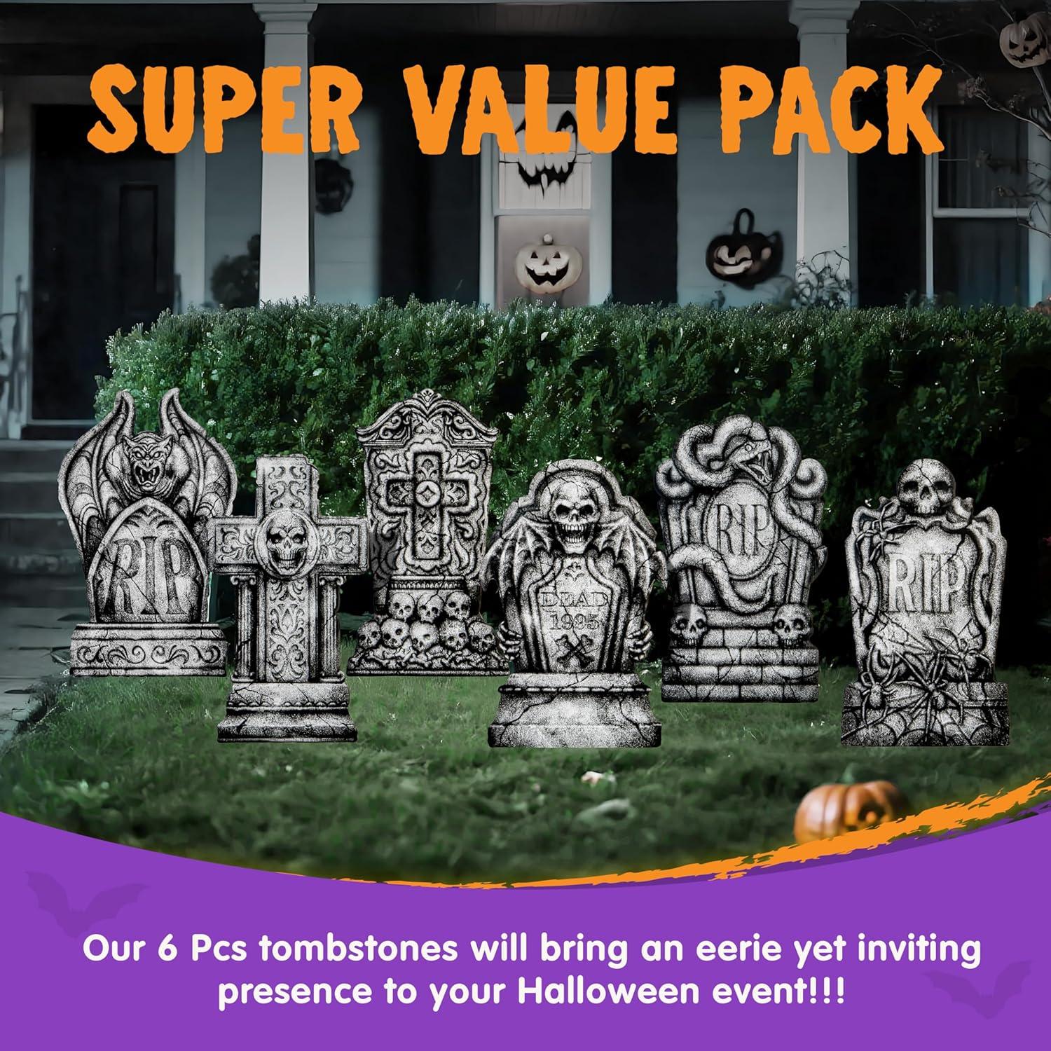 Discover the latest JOYIN 15.7” Halloween Decorations Outdoor Graveyard Tombstones, 6 Pcs Skeleton RIP Plastic Gravestones Halloween Decor with 12 Metal Stakes for Yard Lawn Garden Prop, Party Decor Supplies(Classic) from and take advantage of our limited-time introductory offer.