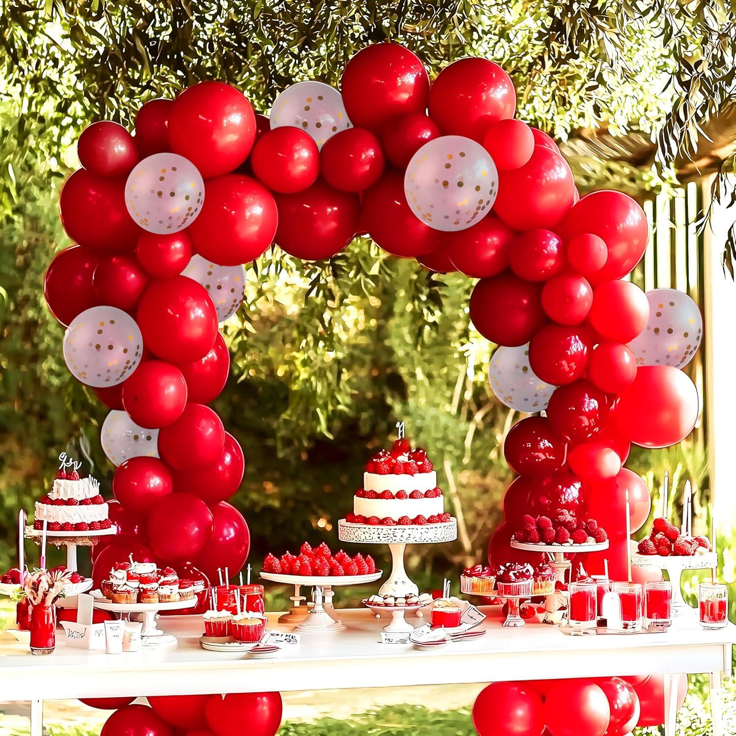 JOYIN 150 Pcs Sand White Balloons, Different Sizes 18 12 10 5 Inch Sand White Latex Balloon Arch Kit with Instruction for Birthday Party Graduation Wedding Holiday Decoration(Red)