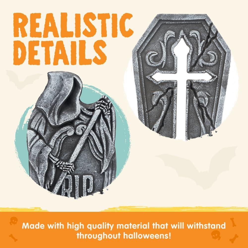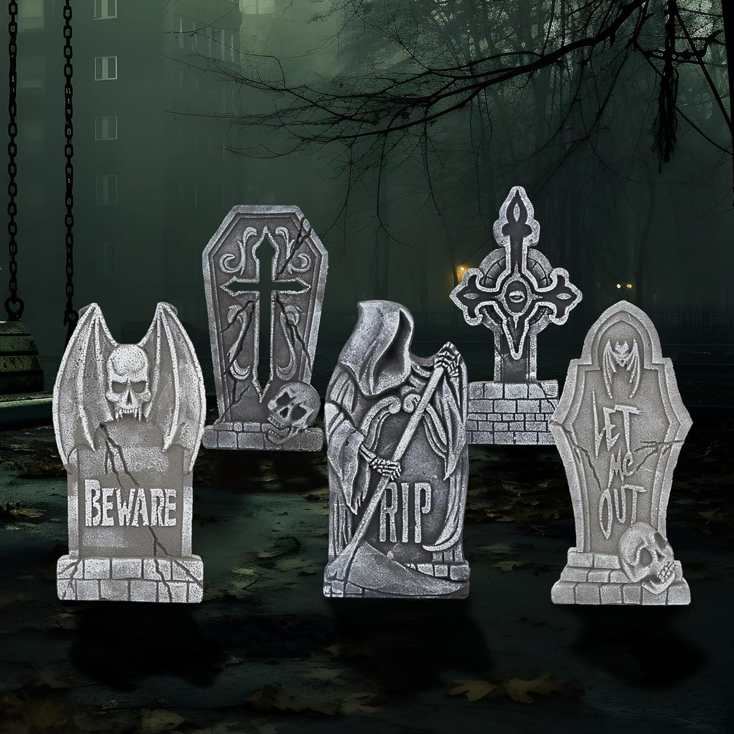 5 different spooky and unique designs for horror ambiance, with realistic stone to complete the grim look. Perfect for any scary situation from yard decorations, Halloween parties, carnivals, mazes, and much more