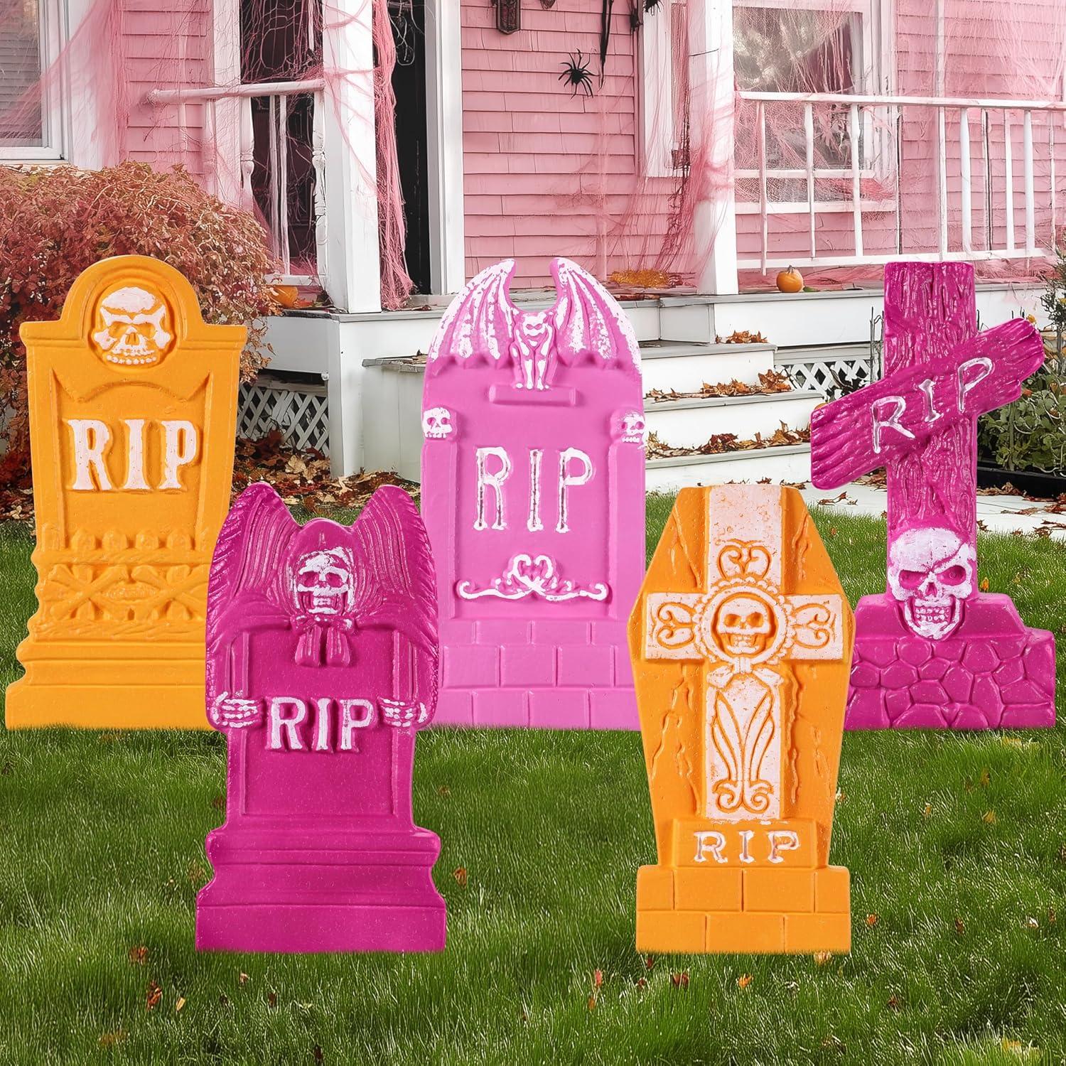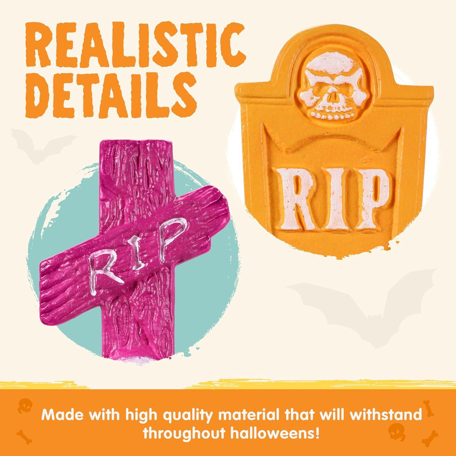 REALISTIC APPERANCE: Gives your yard a deadly appearance with these lightweight and easy to move tombstones.Suitable for Halloween outdoor decoration.