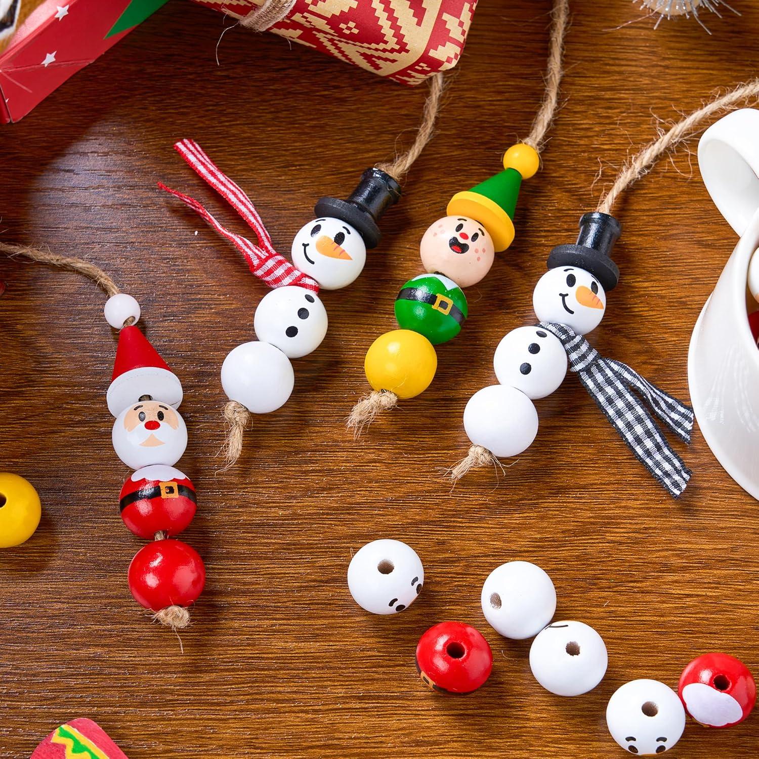 SUPER VALUE PACK. The perfect way to add a personal touch to your holiday decorations! This crafts is packed with everything you need to create 30 charming ornaments, featuring three beloved characters: Santa santa, Snowman, and Elf. Let your imagination run wild with these 90 large wooden beads, 30 wooden discs, 20 small wooden beads, 10 dumbbell wood beads, 20 triangle wood beads, and three bundles of festive ribbons and twine.