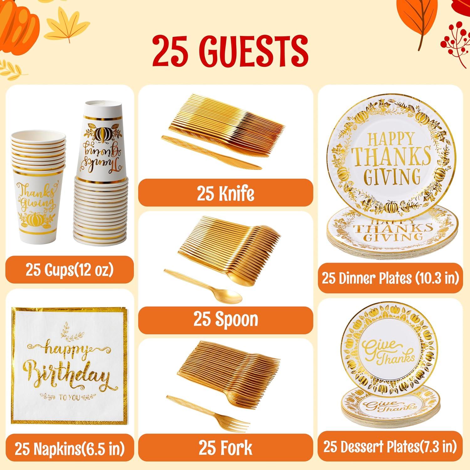 SUPER VALUE PACKAGE: Get all your Thanksgiving party essentials in one set, including 175 pieces with a Thanksgiving-themed design and gold foil texture.