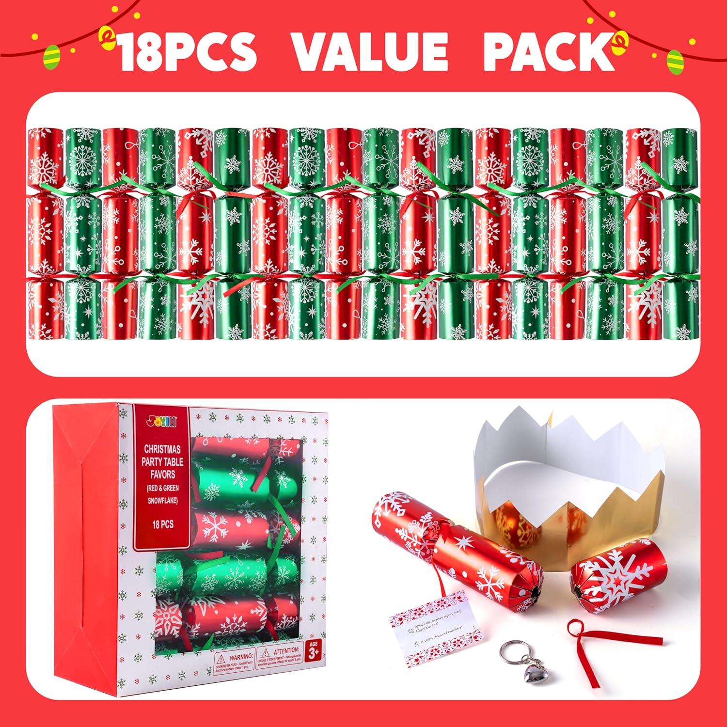 JOYIN 18 Pack Non-Snap Christmas Party Table Favor, Xmas Red & Green No Snap Snowflake Party Favors for Christmas Stocking Stuffers Party Supplies Decorations, Holiday New Year Adults Kids Gifts