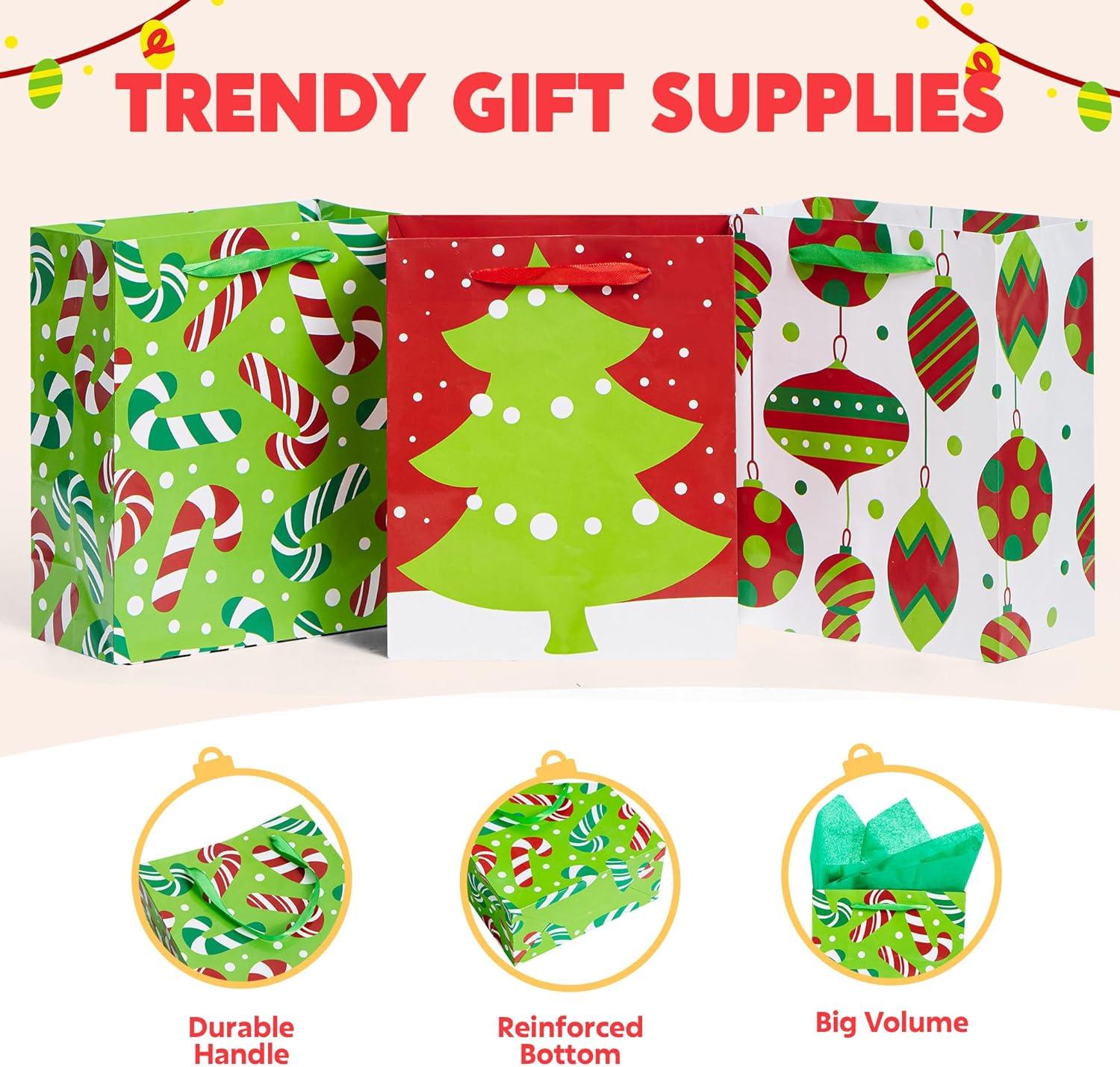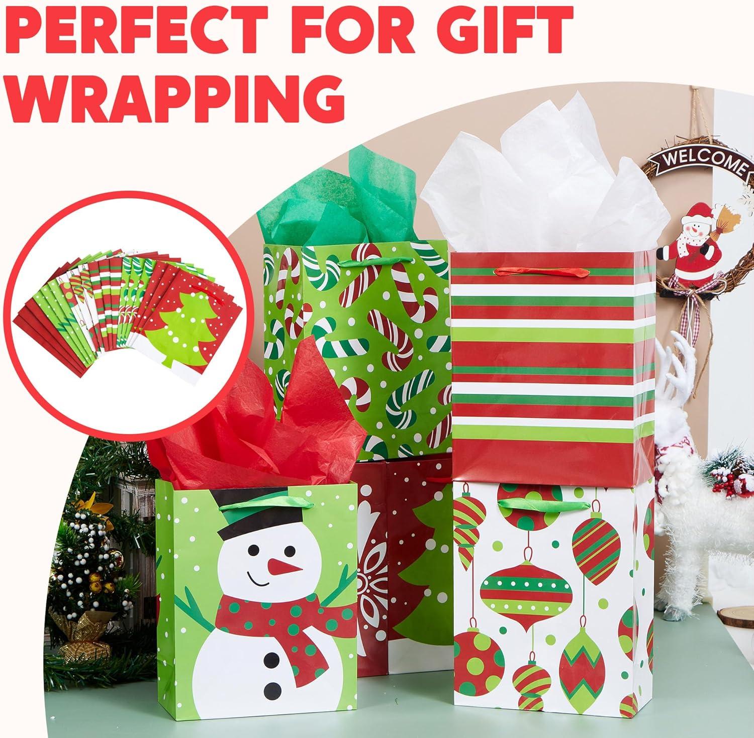 Premium Quality: Made from sturdy and durable paper, these Christmas Paper gift wrap bags are designed to hold gifts securely. The high-quality material ensures the holiday bags can be reused multiple times, making them both economical and friendly.