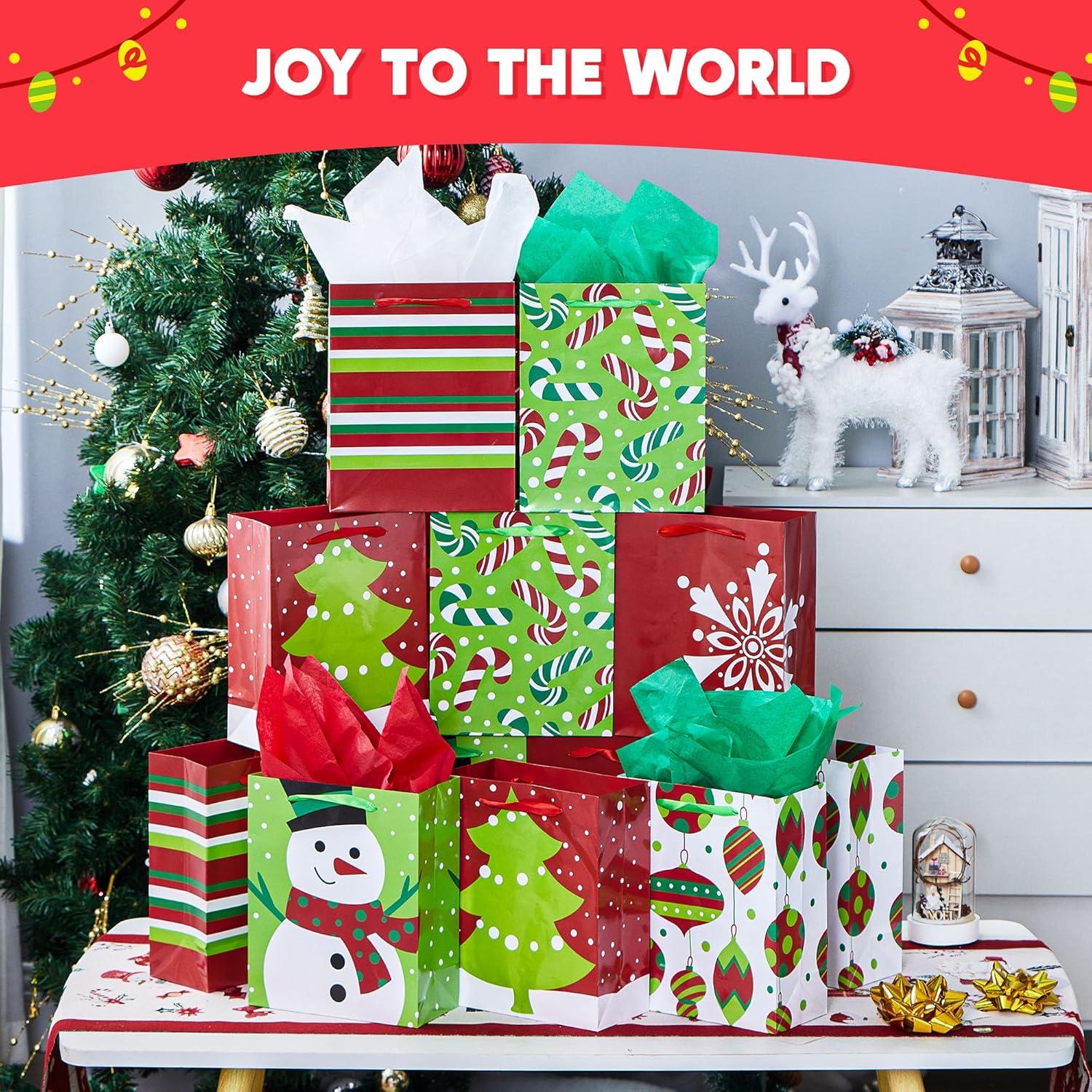 Enhances Festive Atmosphere: The colorful and cheerful designs of these xmas gift bags make your celebrations even more special. They are perfect for adding a festive touch to your gift presentation and party decor.