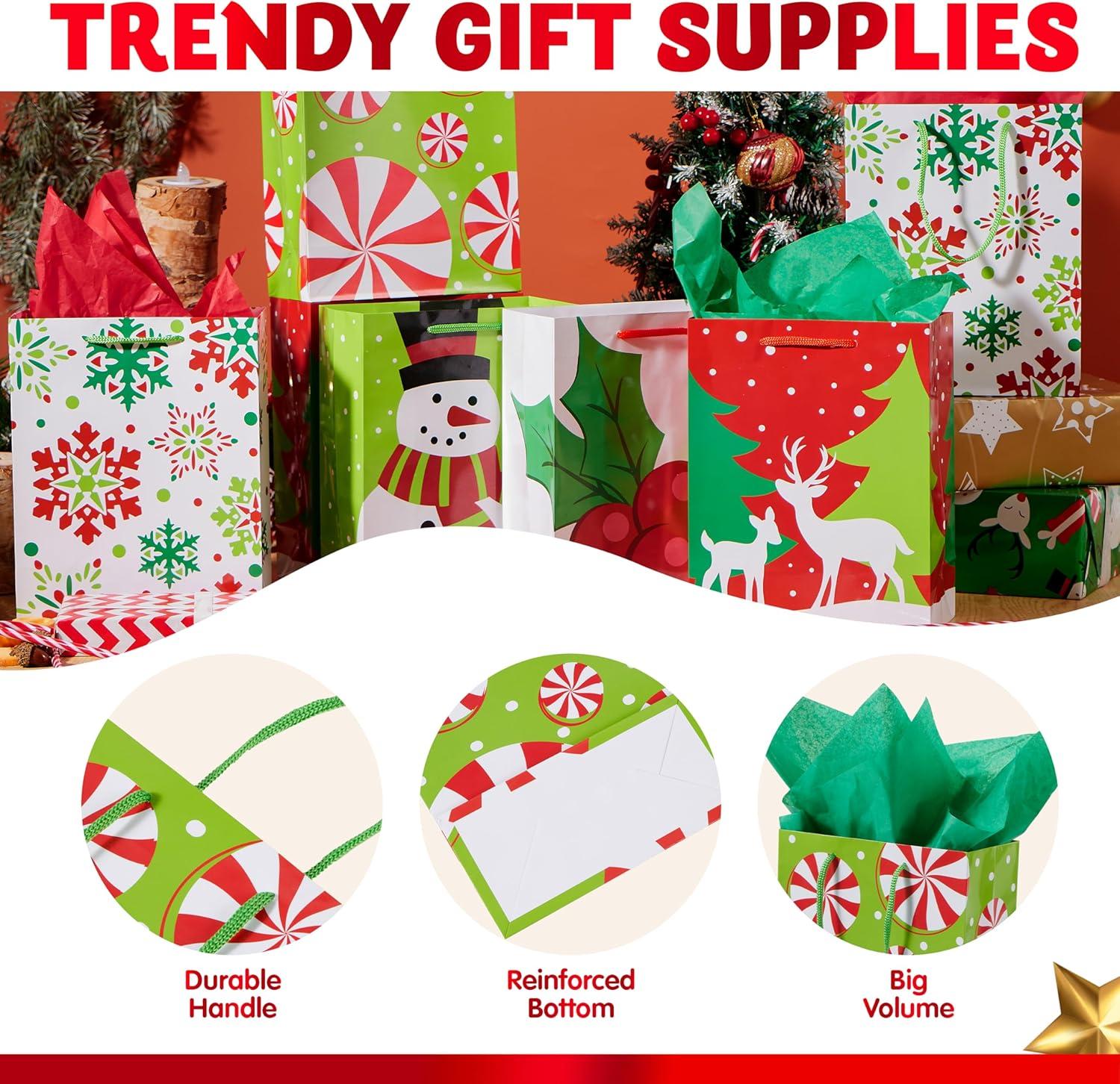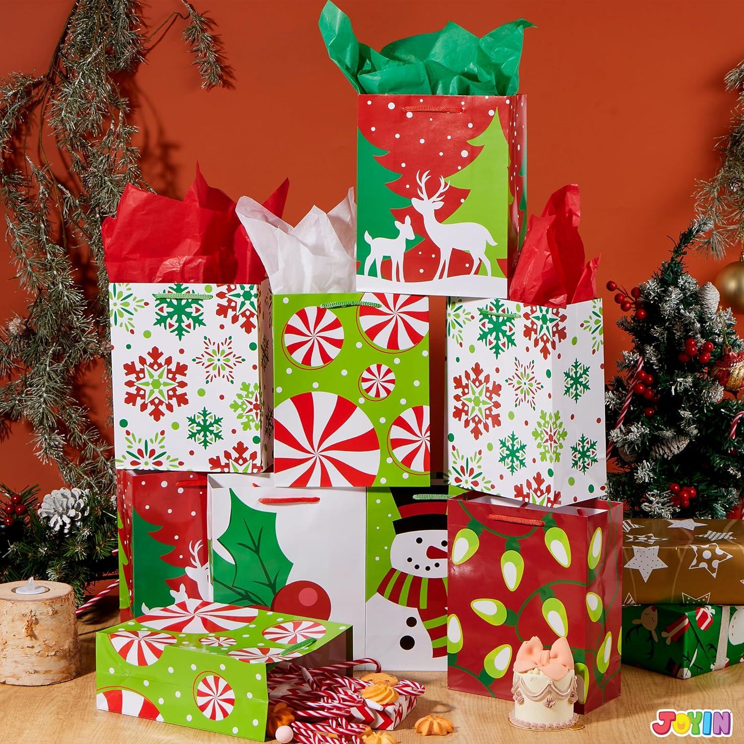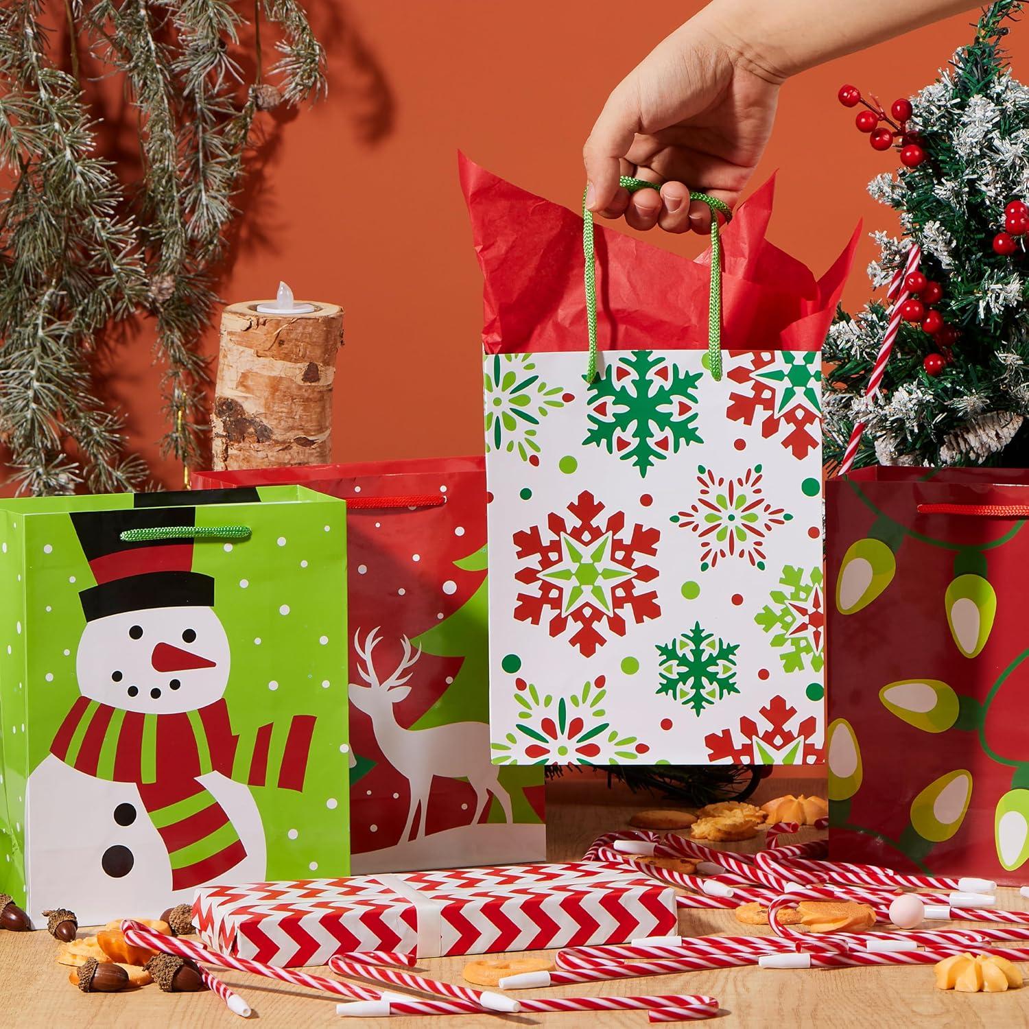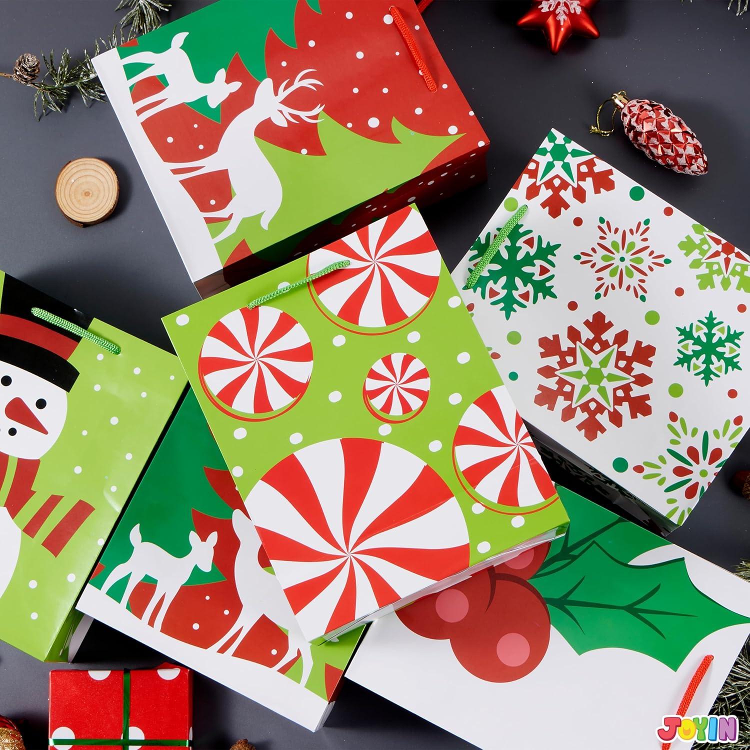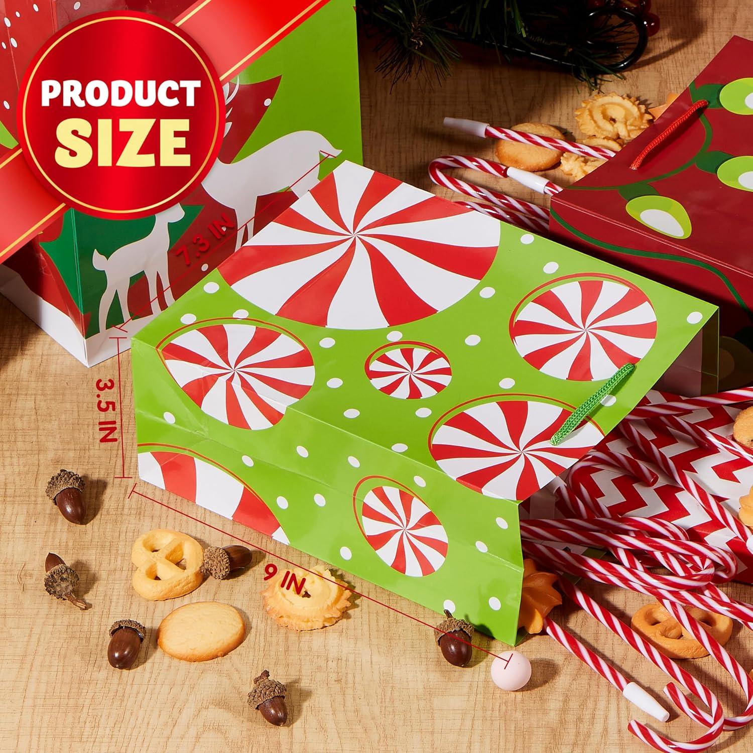 SUPER VALUE PACK. Our Xmas Gift Bags include 18 pieces of Paper Gift Bags with 6 designs, measuring 9″x 3.5″x 7.3″. They are perfect for adding a festive touch to your gift presentation and party decor.