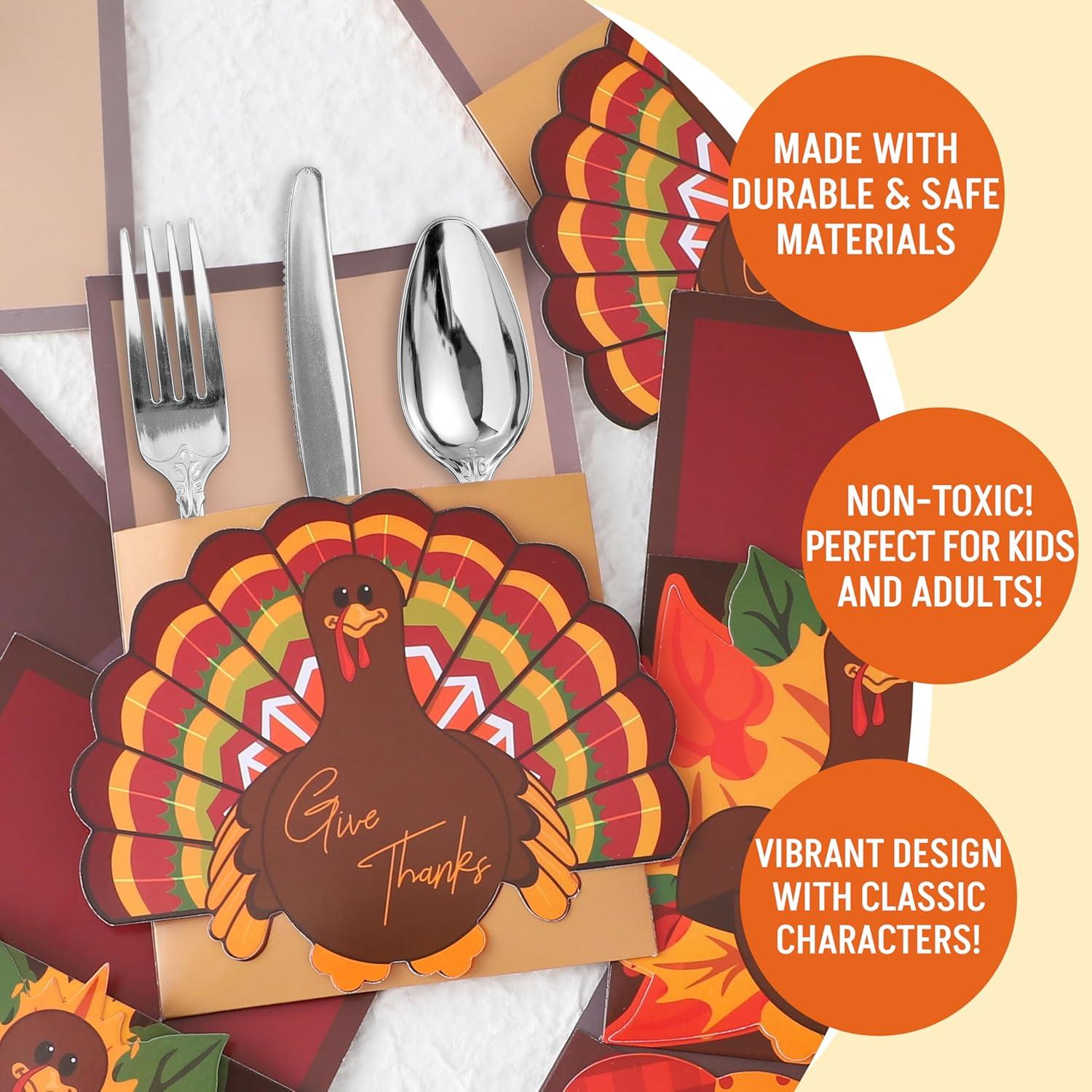 Thanksgiving Cutlery Holder Set includes 18 Count Heavy Paper Table Utensil Holders.
