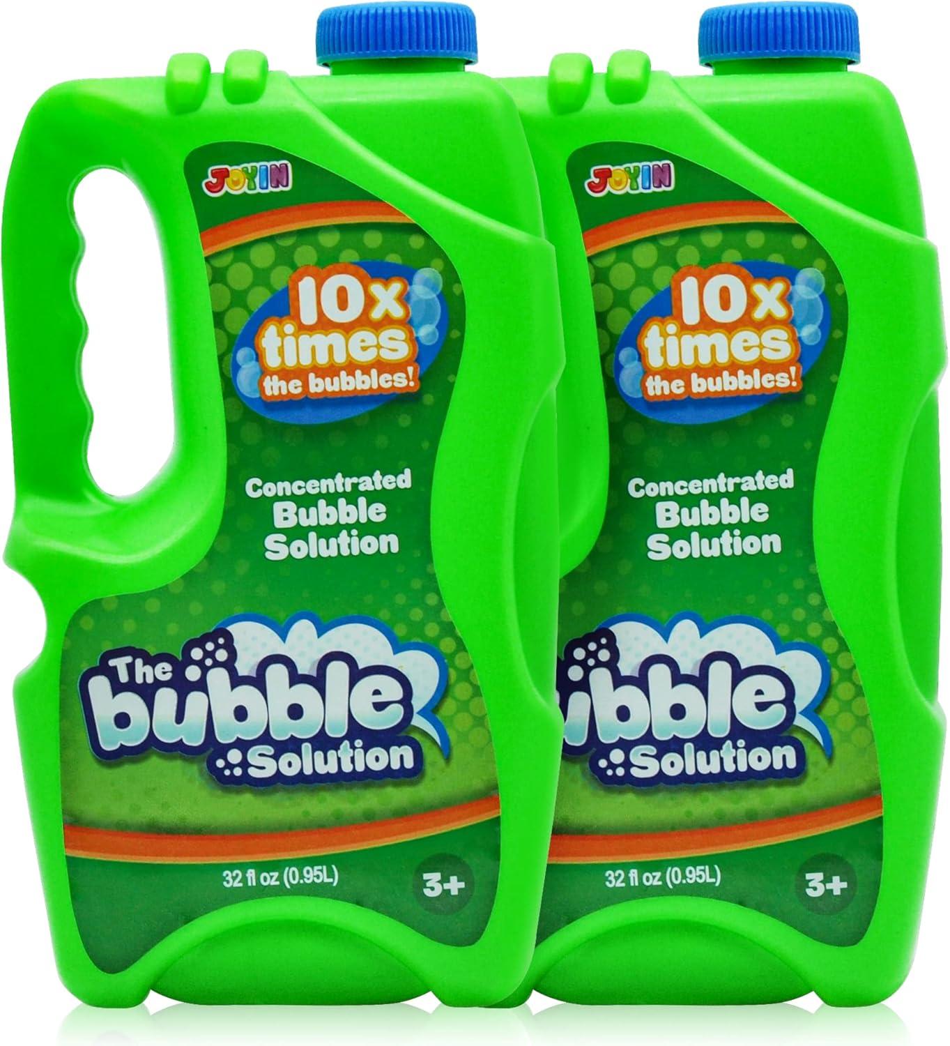 SUPER VALUE. Bubble Solution Weight: 64 OZ Includes 2 Bottle of 32 FL. OZ. of Premium Soap Concentrated Bubbles Solutions – JOYIN Toy Bubbles Refill Solution has been formulated to Create Both Regular and Giant Bubbles. Regular Bubble 1:10 Total Make 2.5 Gallons / Giant Bubble 1:6 Total Make 1.5 Gallons.