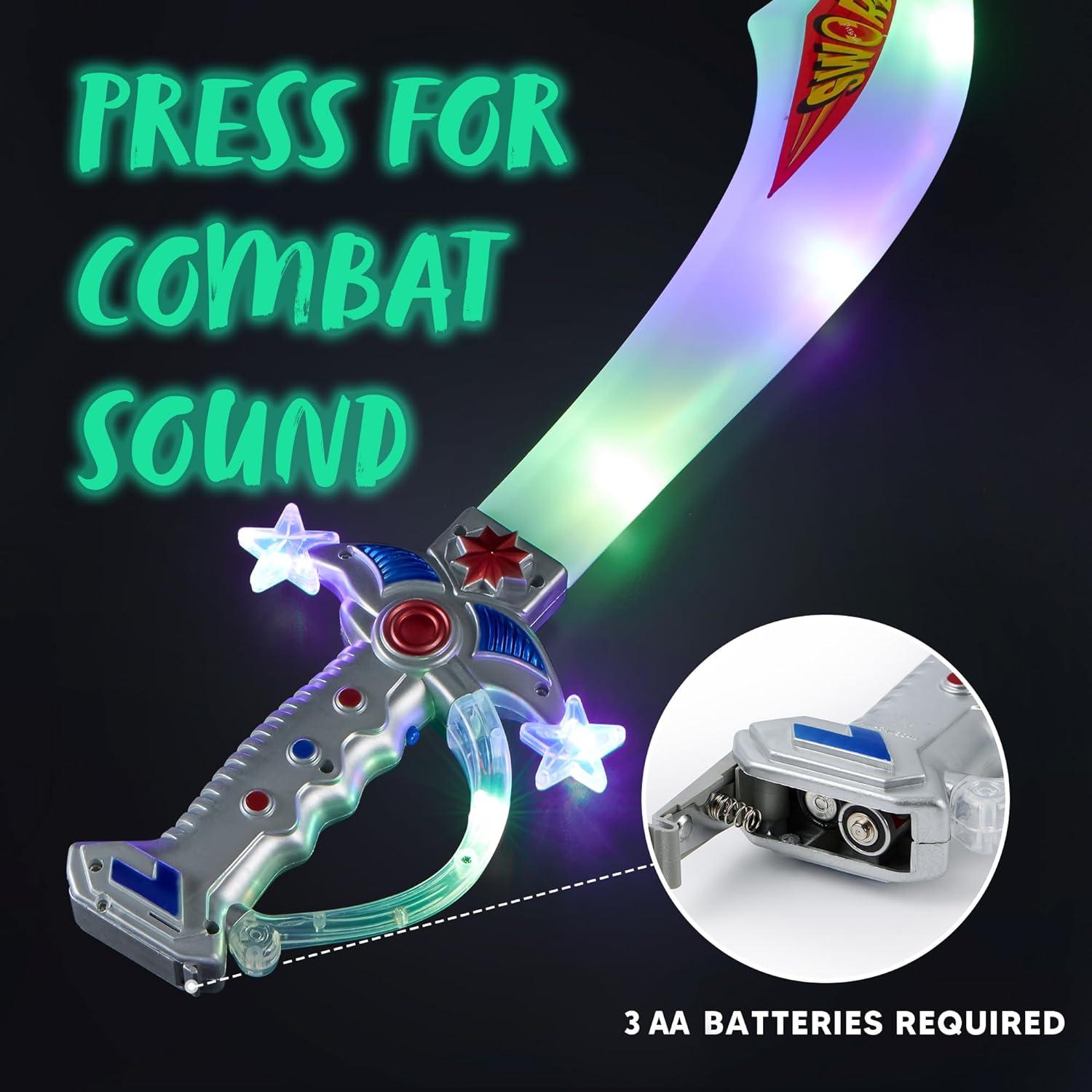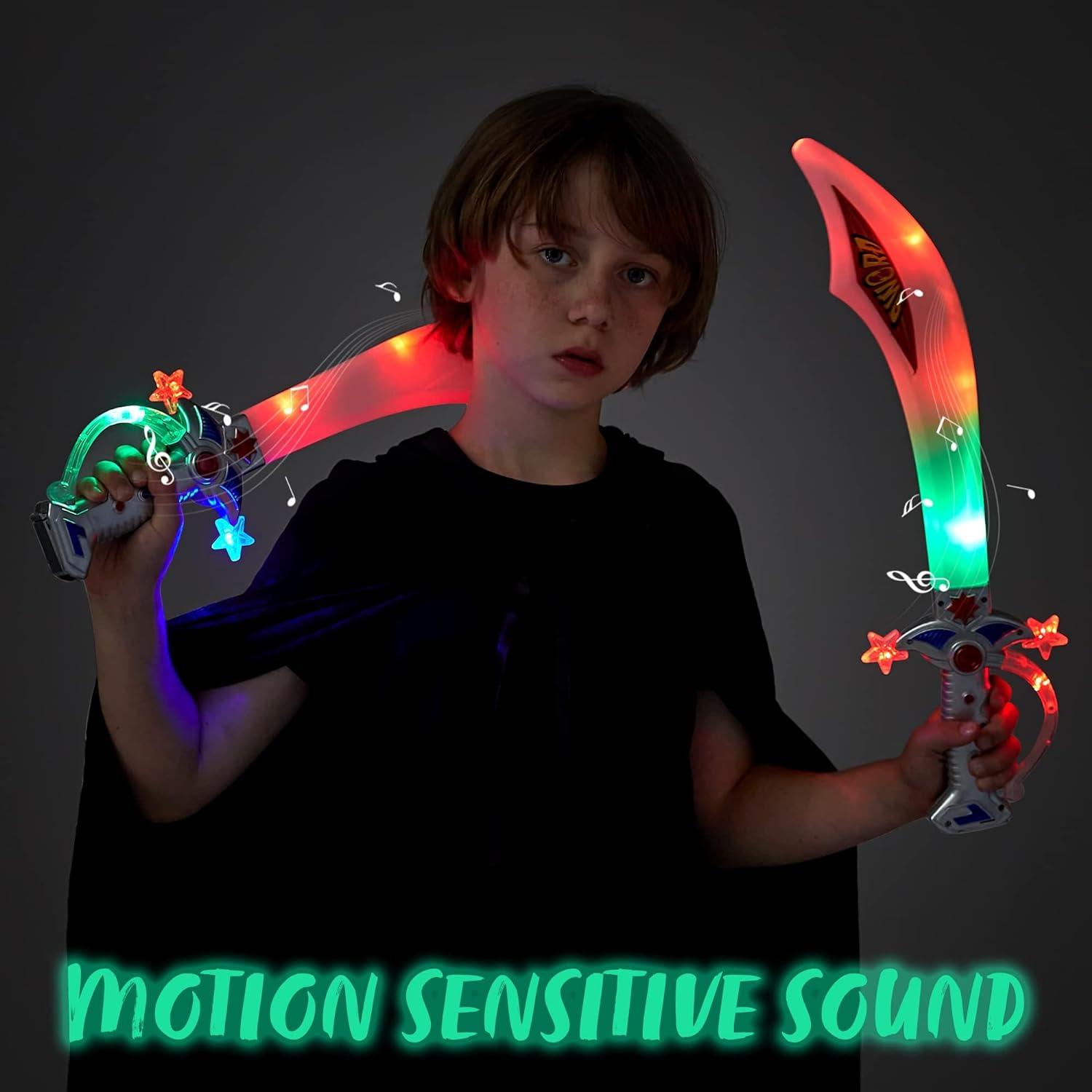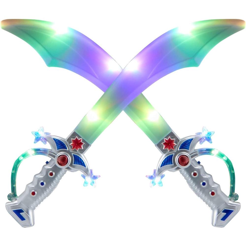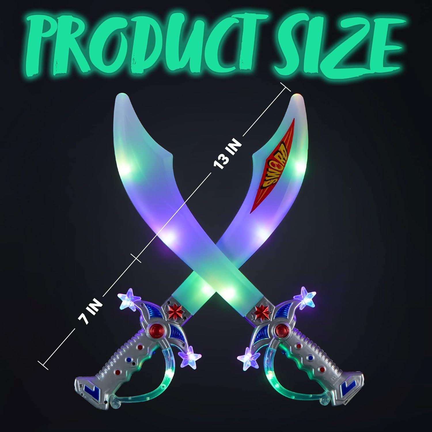 19.5″ LED Light Up Buccaneer Pirate Swords for Kids include 2 Pack of LED Light Up Deluxe Buccaneer Pirate Swords with Motion Activated Clanging Sounds and Multi-Color LED Blades.