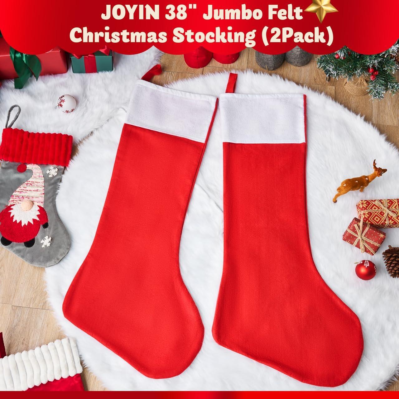 JOYIN 2 Packs 38” Jumbo Felt Christmas Stockings Party Decoration, Giant Christmas Large Stocking for Party Decorations Xmas Holiday Tree Decor